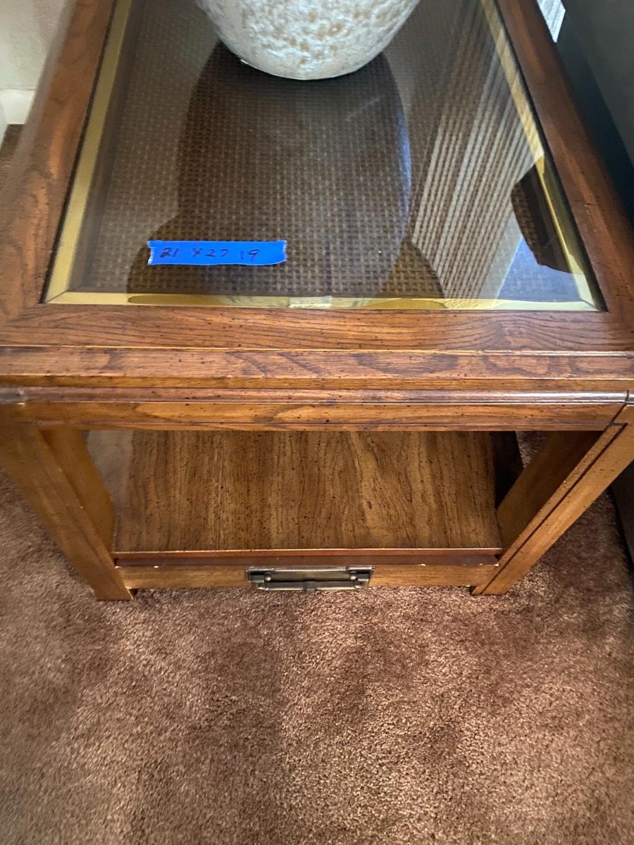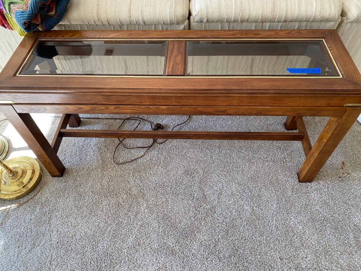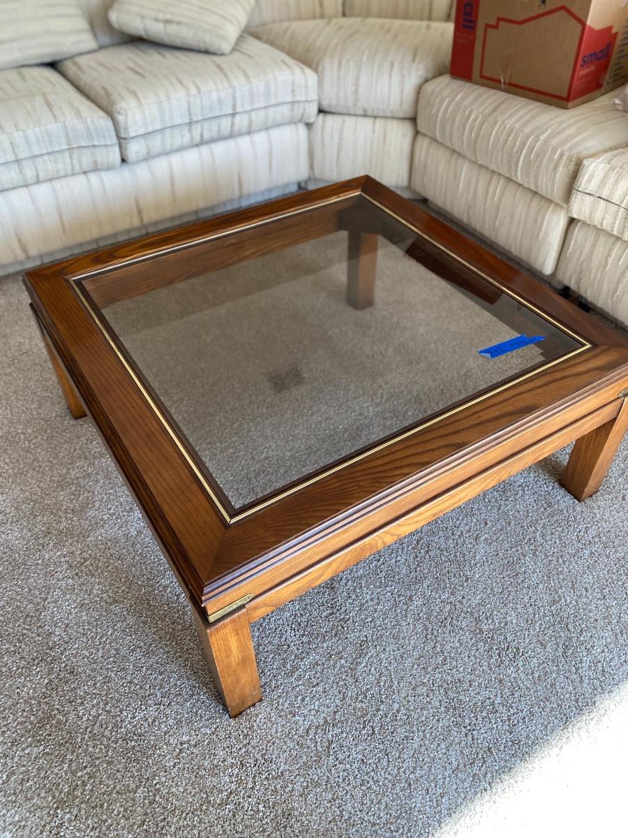Includes coffee table, three Consol tables and two end tables. See all photos. Measurement descriptions are in photos as well. Heavy items! You must bring help to move these items or arrange for a professional mover.