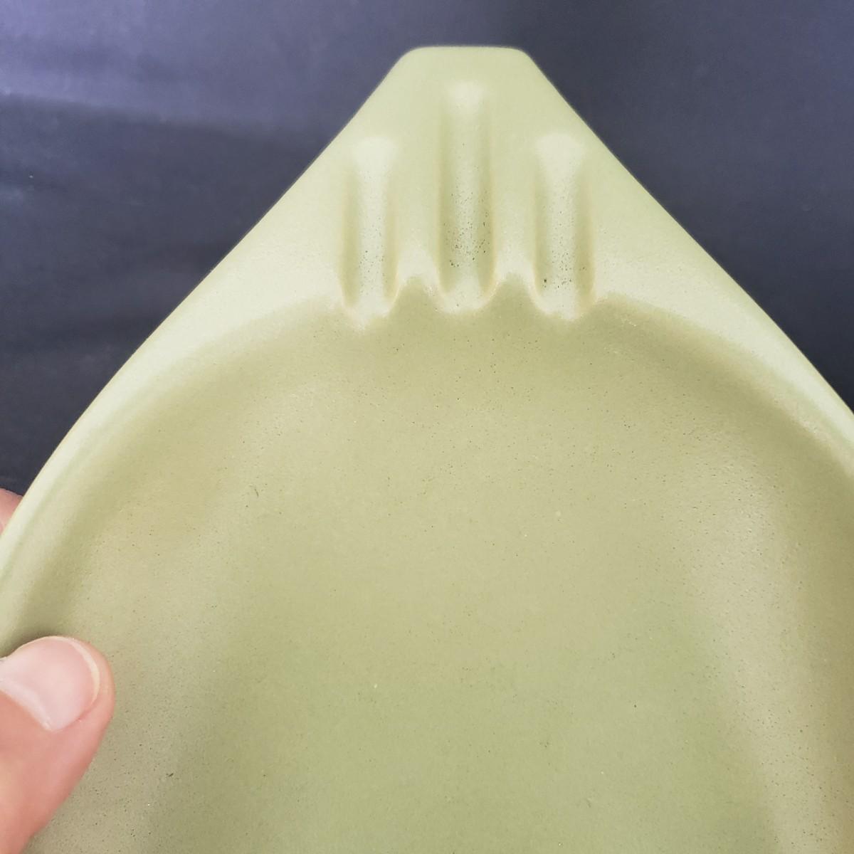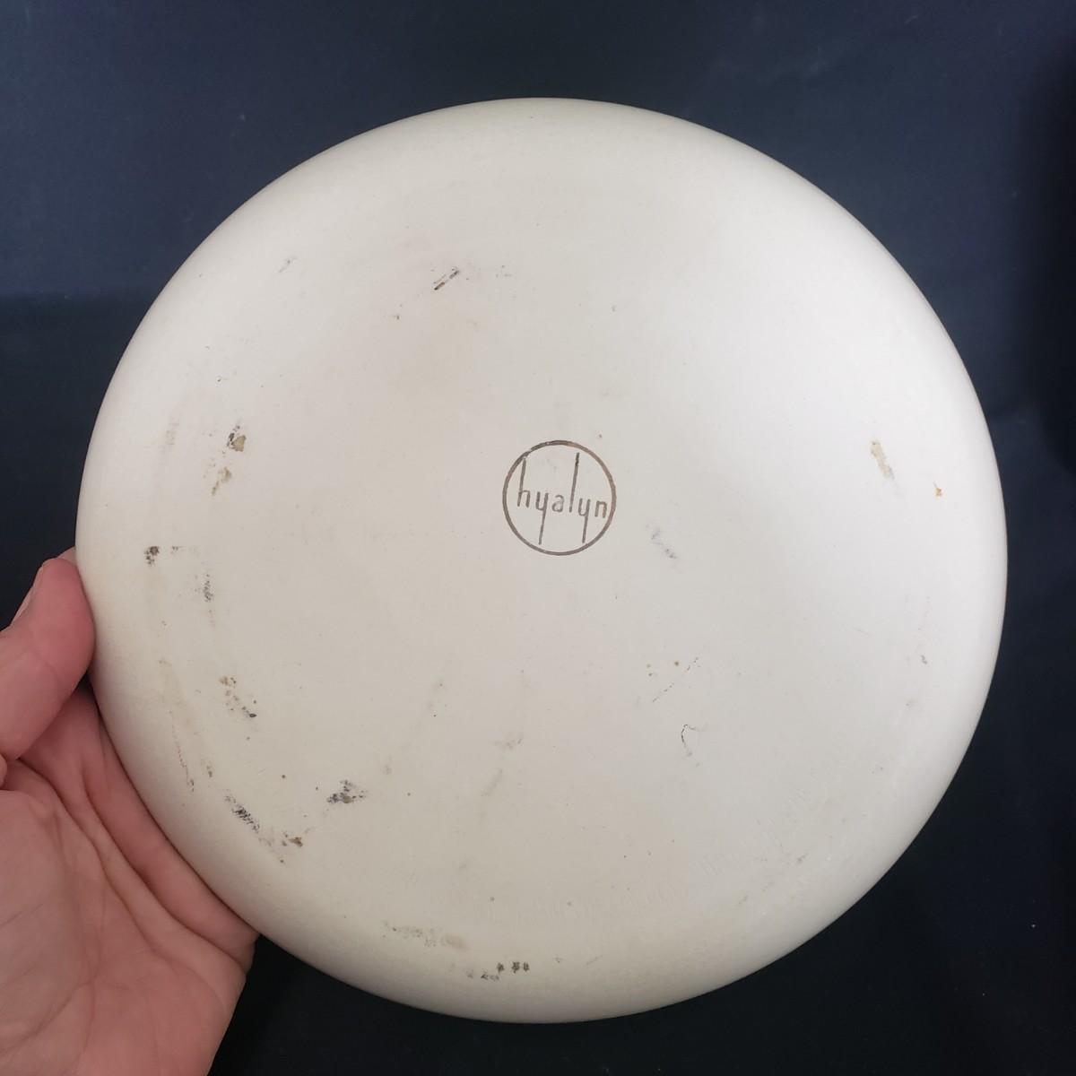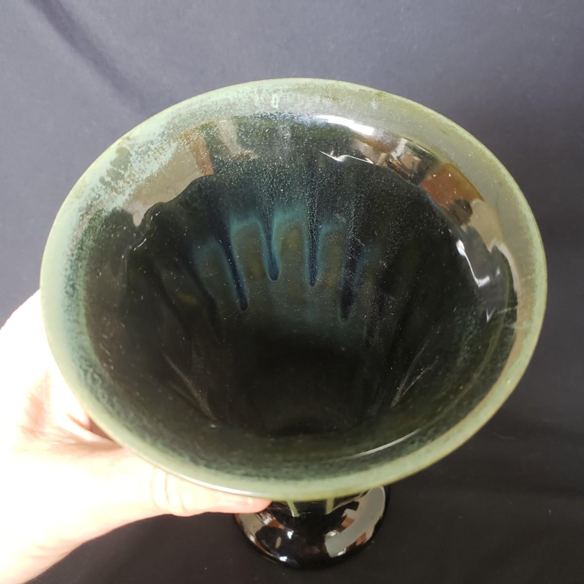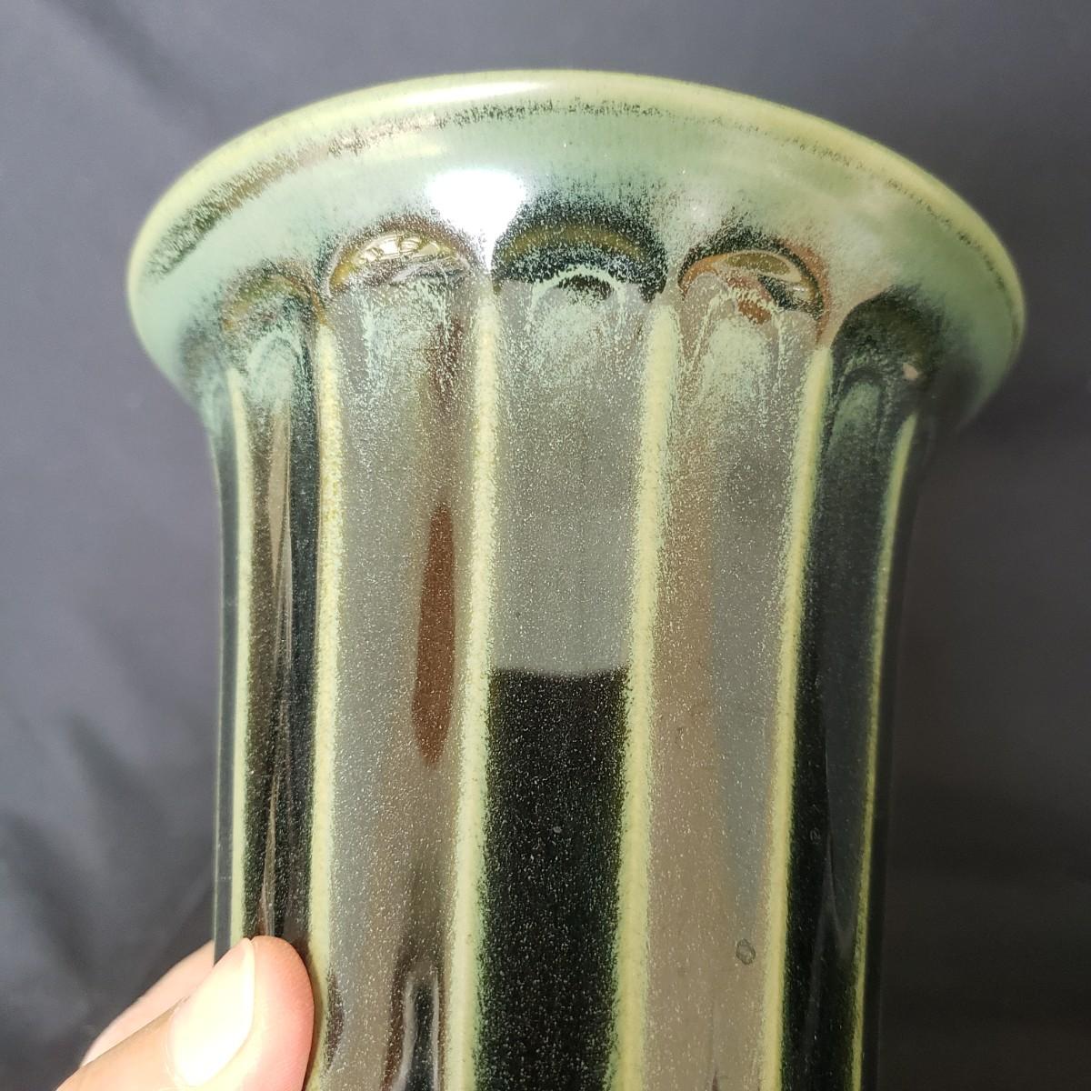 This six piece Hyalyn pottery collection has both smooth matte finishes as well as glossy. The green/black vase measures 9" x 5". Each piece is stamped and some are numbered. See pictures for details. The cream bowl has a blemish but may be able to wash off.