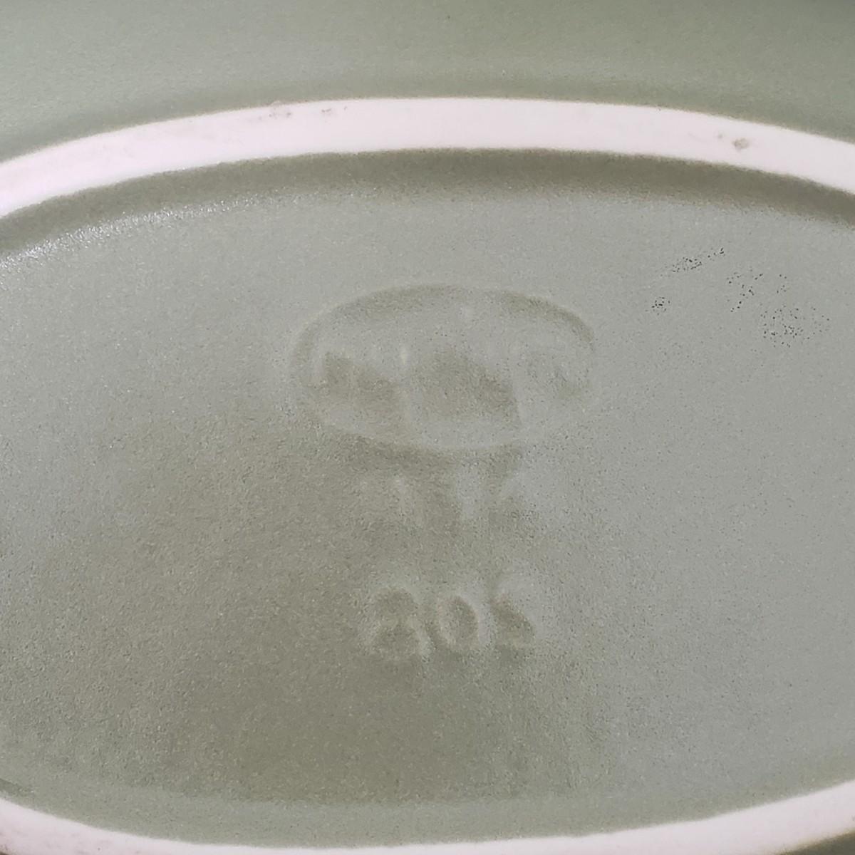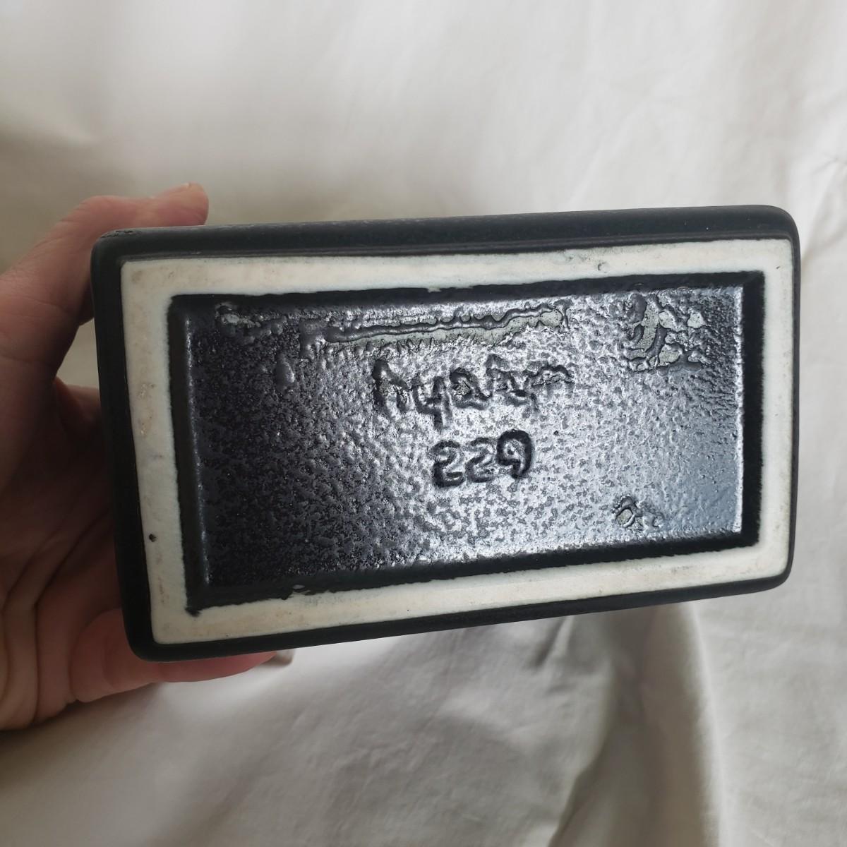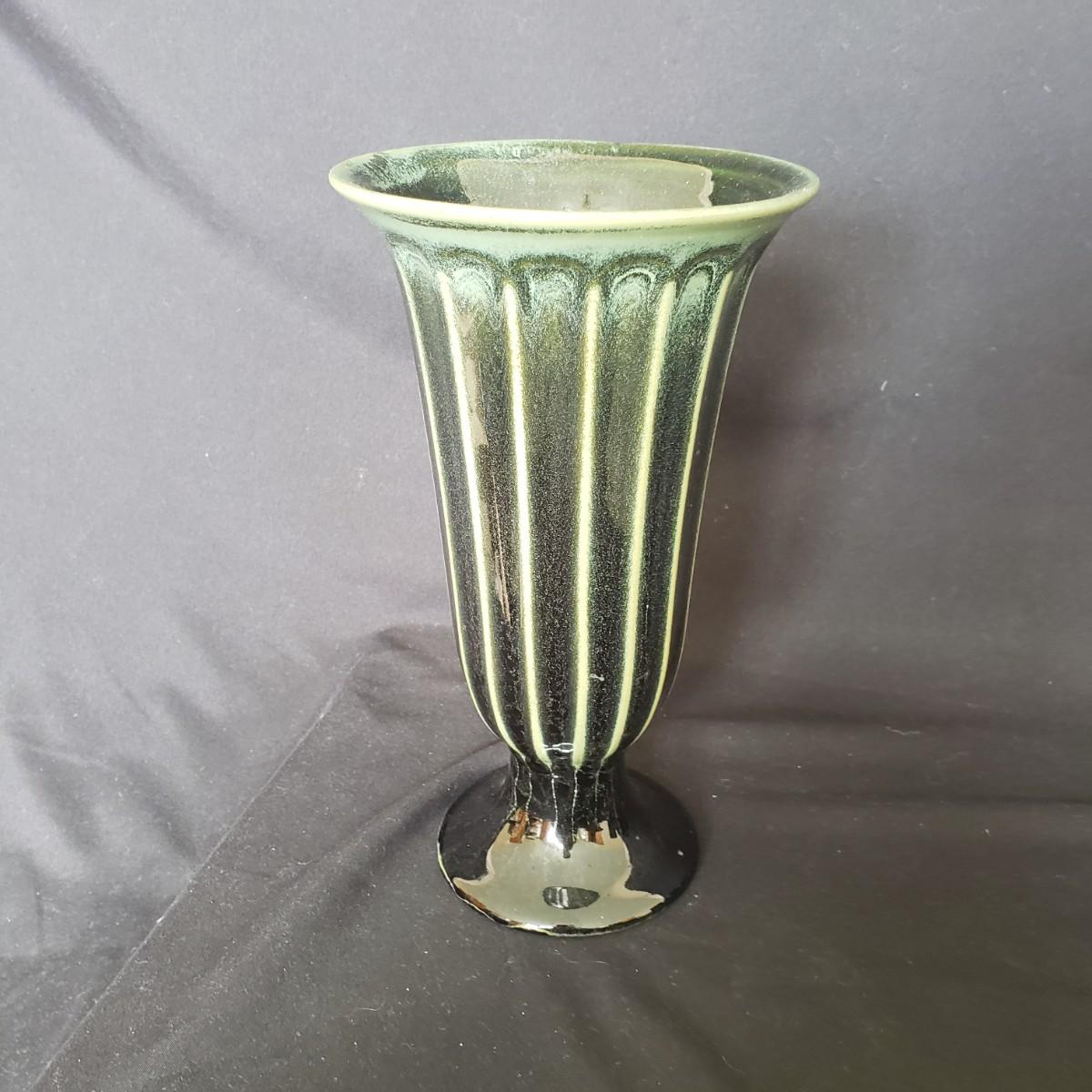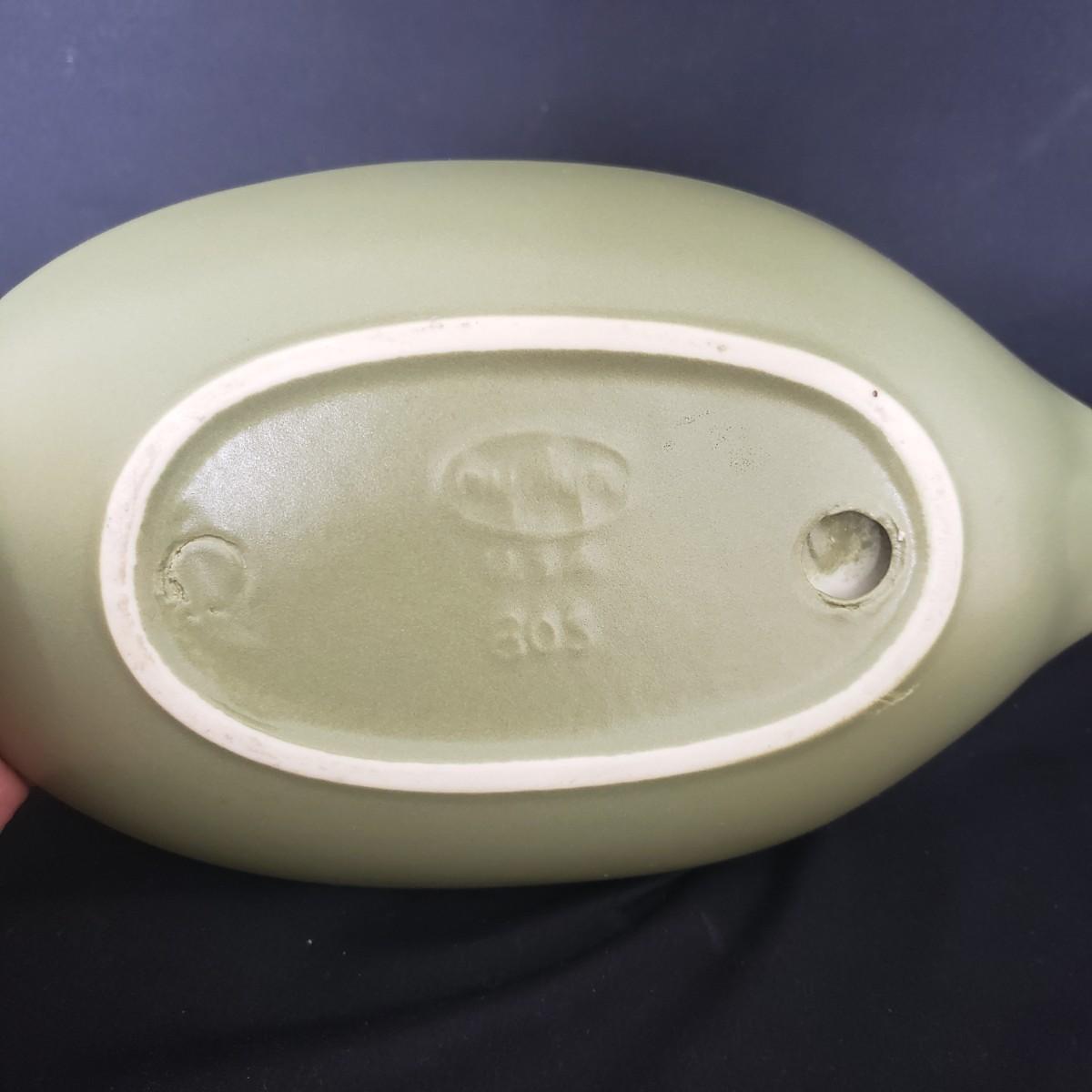 This six piece Hyalyn pottery collection has both smooth matte finishes as well as glossy. The green/black vase measures 9" x 5". Each piece is stamped and some are numbered. See pictures for details. The cream bowl has a blemish but may be able to wash off.