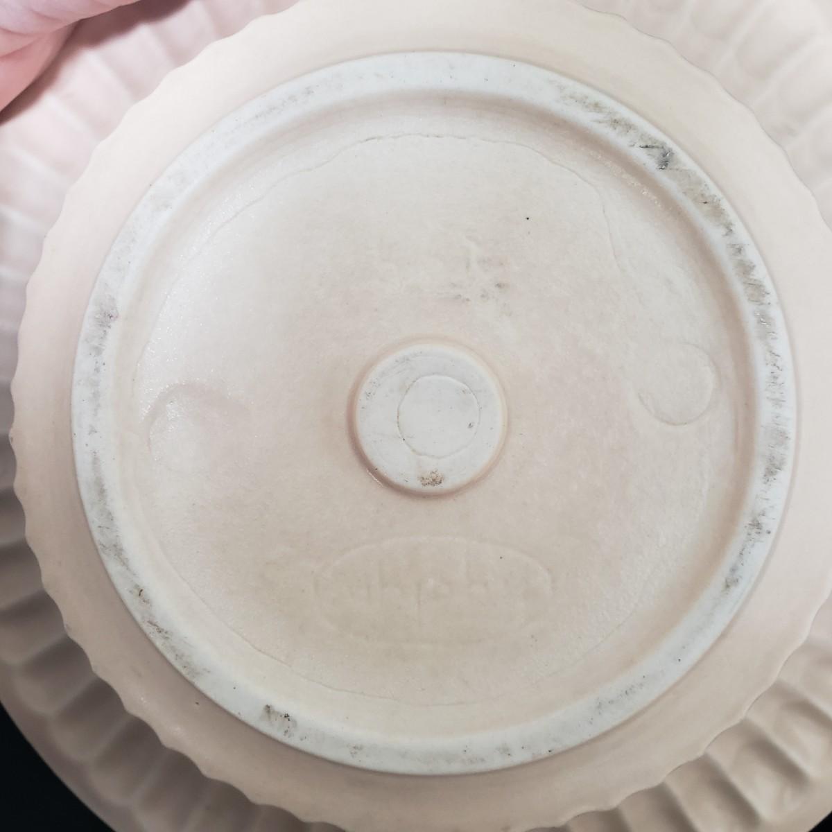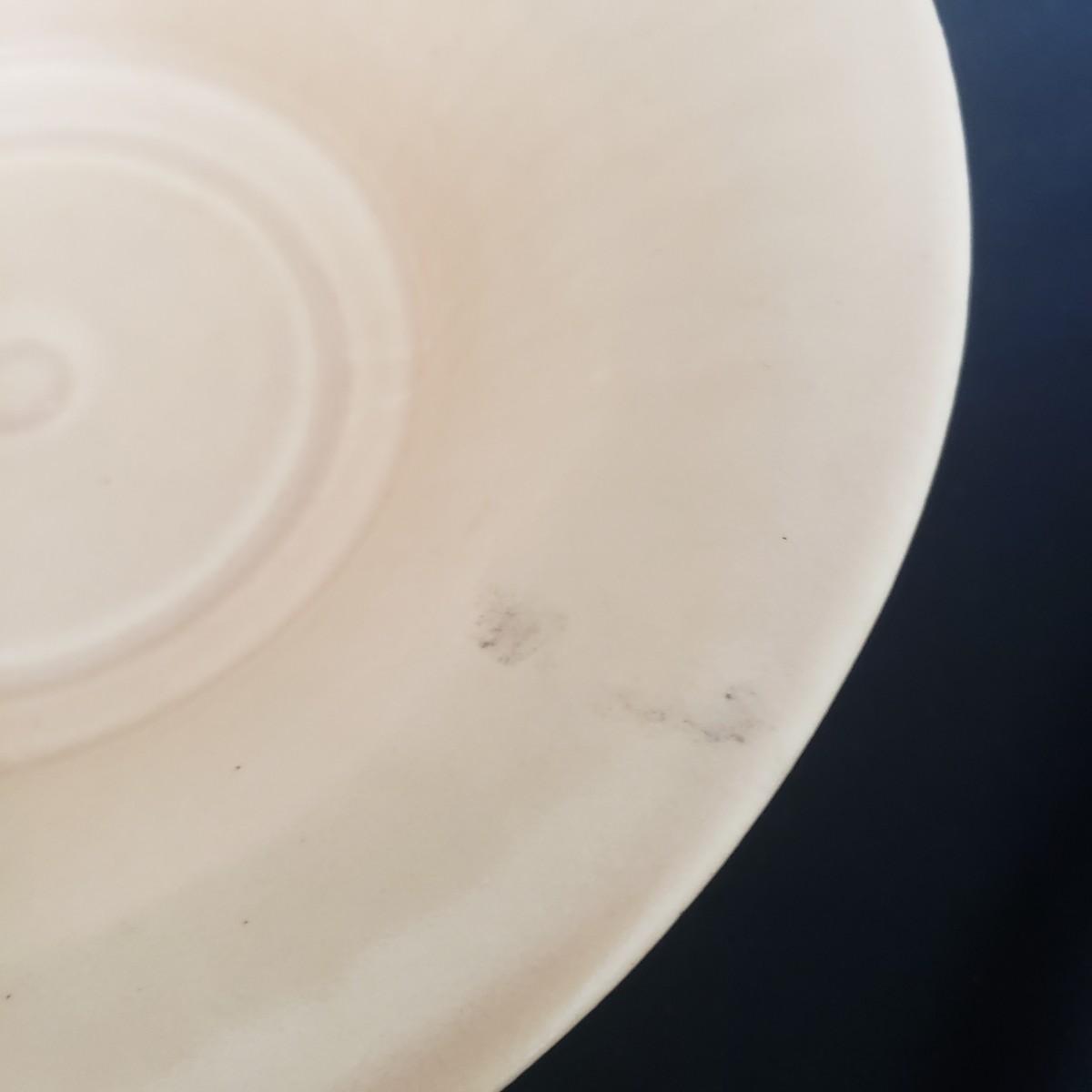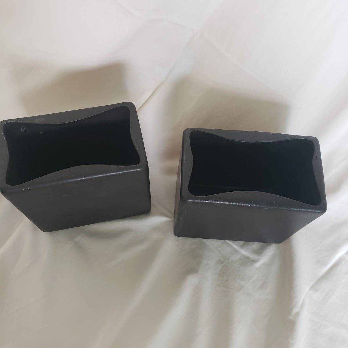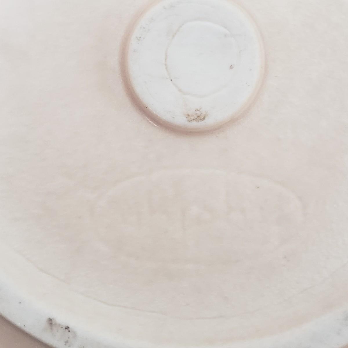 This six piece Hyalyn pottery collection has both smooth matte finishes as well as glossy. The green/black vase measures 9" x 5". Each piece is stamped and some are numbered. See pictures for details. The cream bowl has a blemish but may be able to wash off.