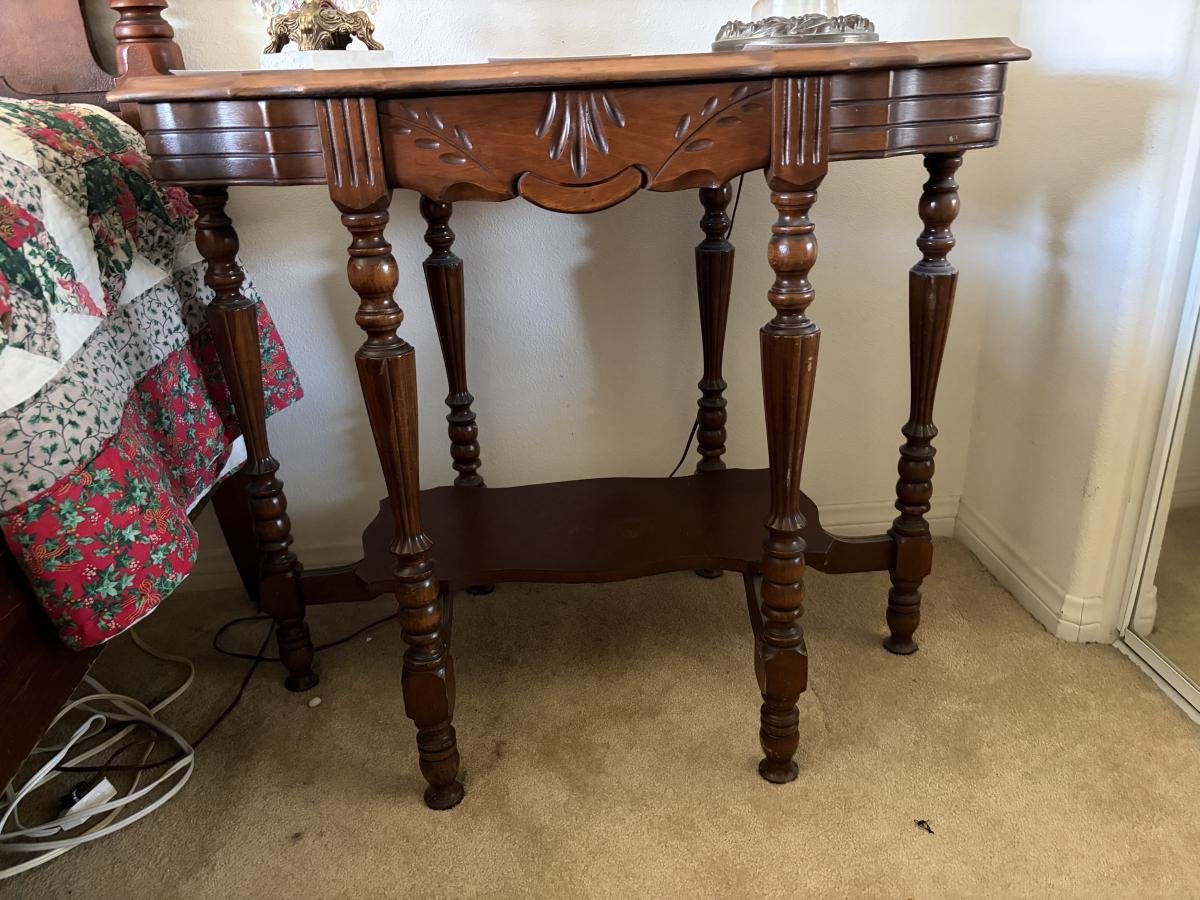 Six-legged walnut lamp table