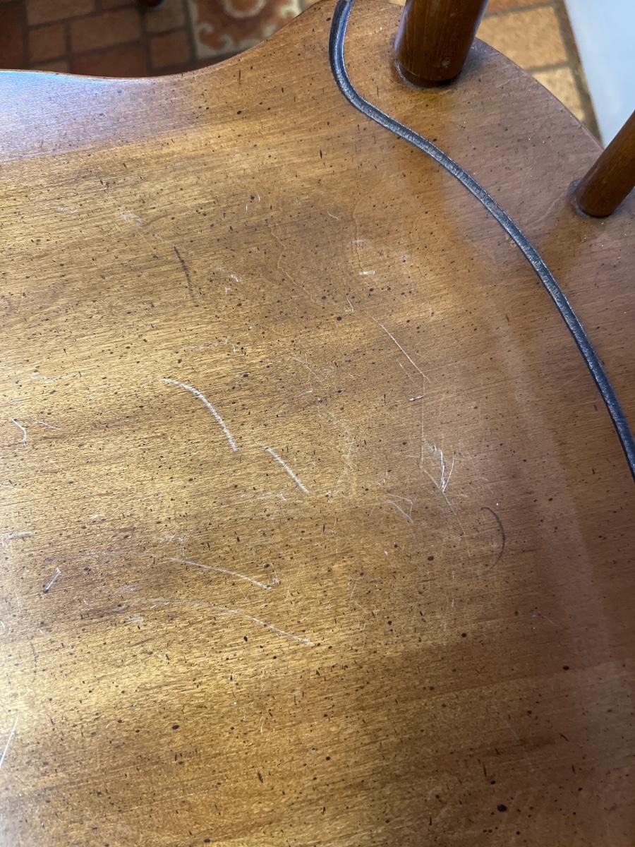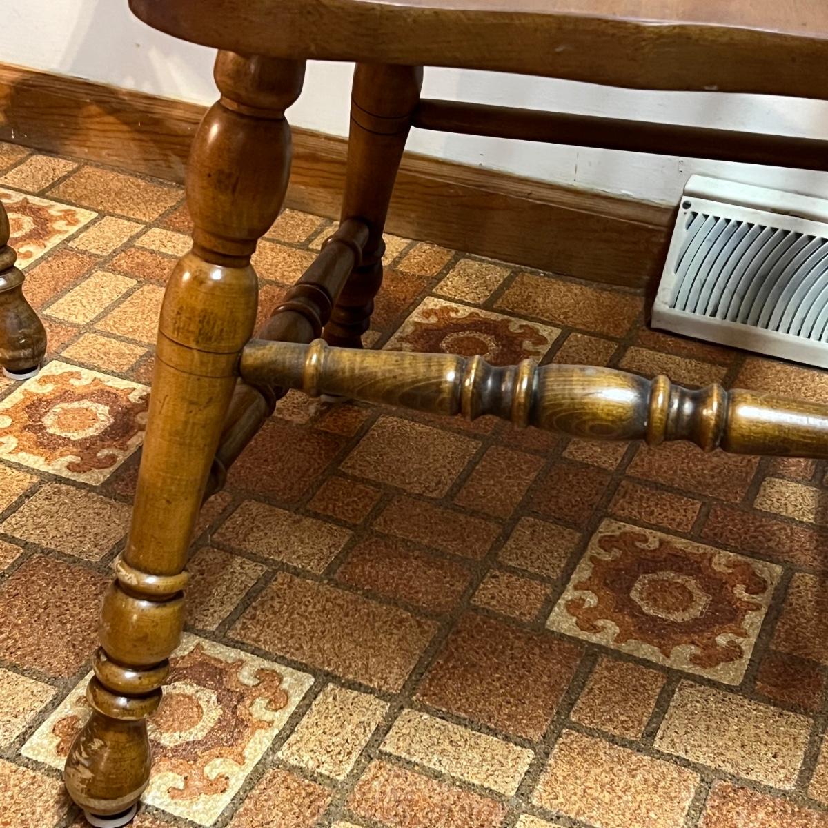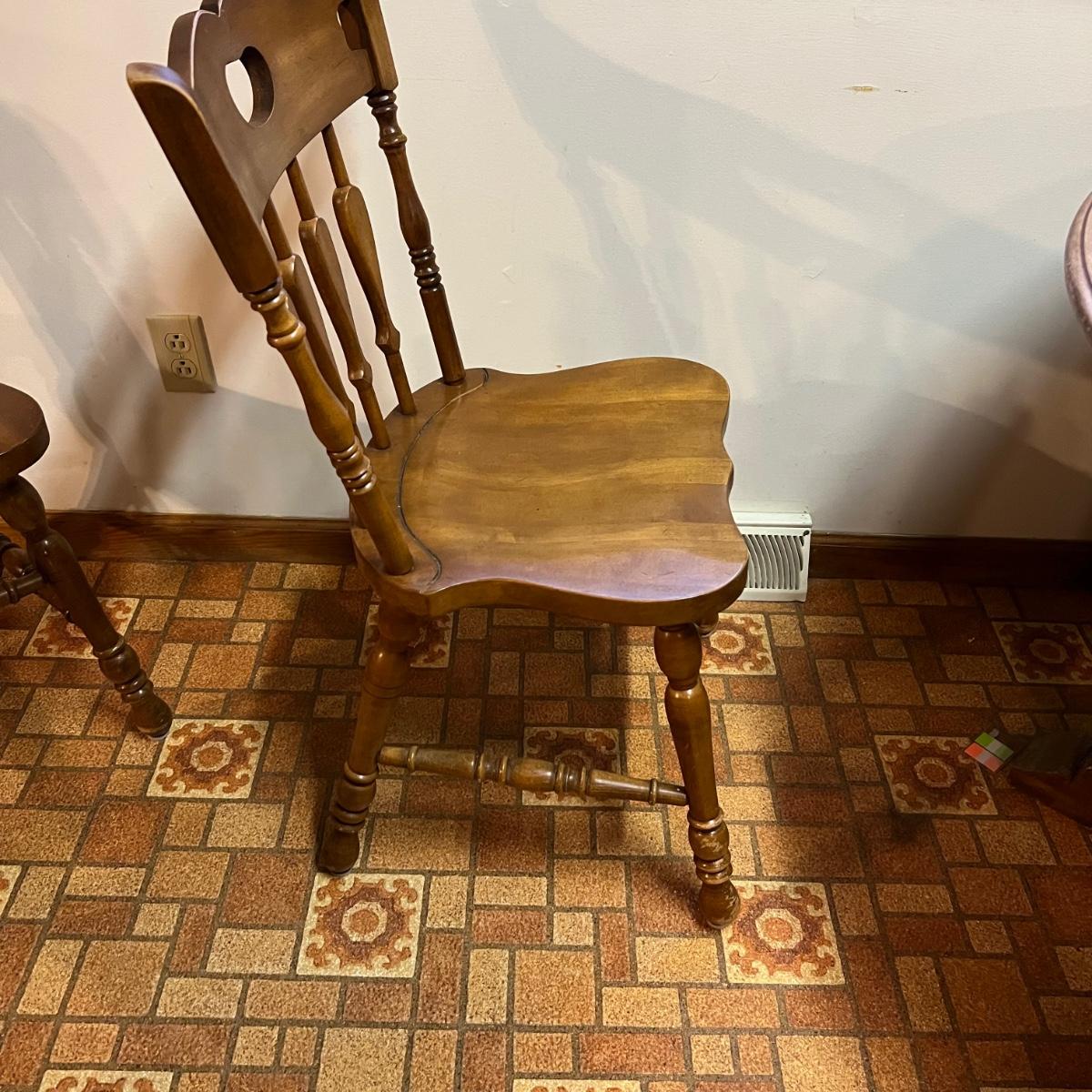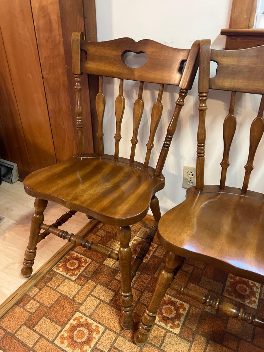 These solid wood chairs are made by Cochrane and are good and sturdy spindle back chairs. Chairs have a few minor scratches, see images.