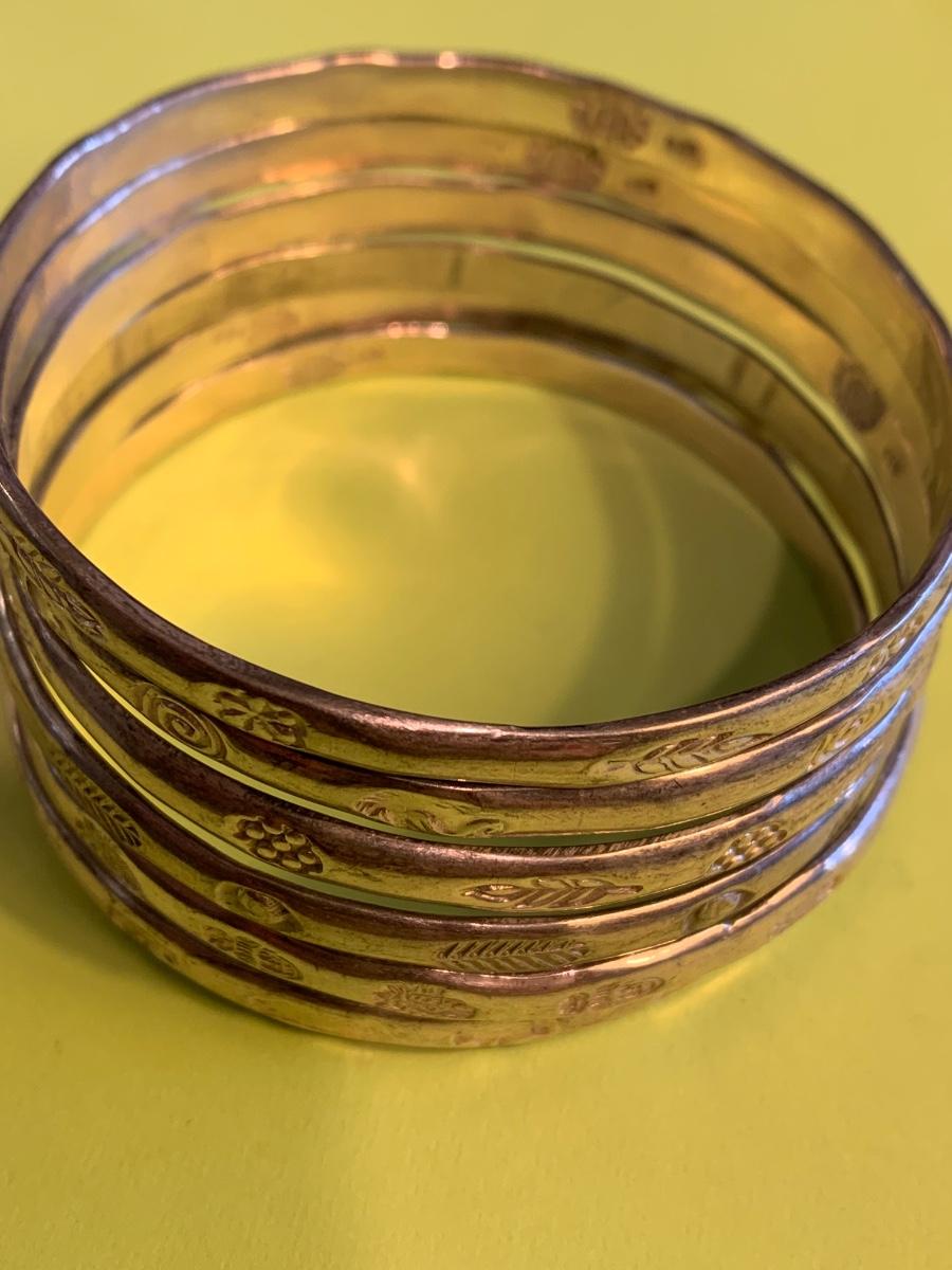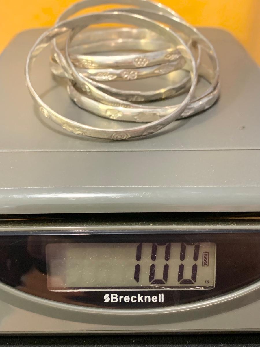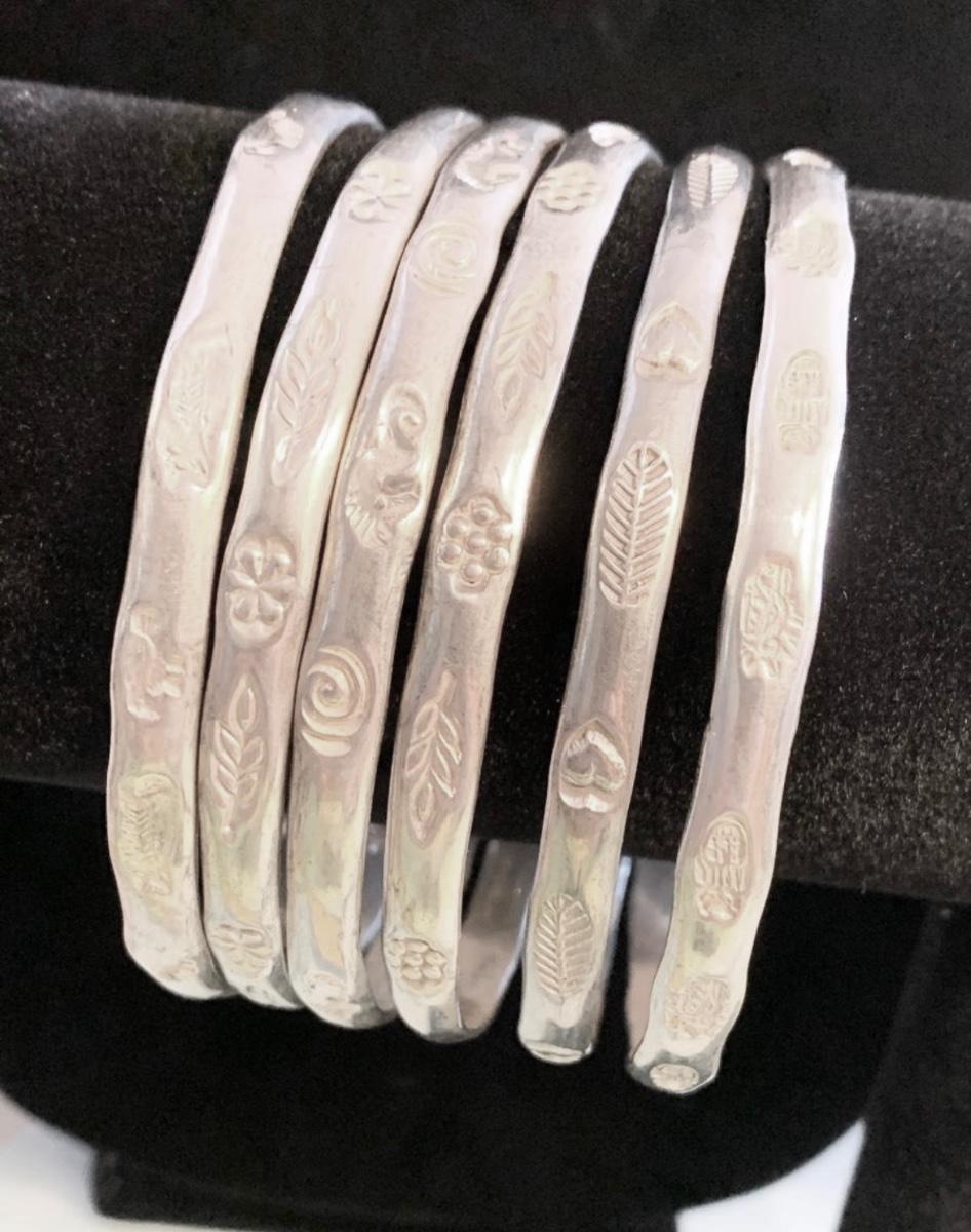 SIX Mexican Designer Hallmarked Silver Bangle Bracelets - 100 grams