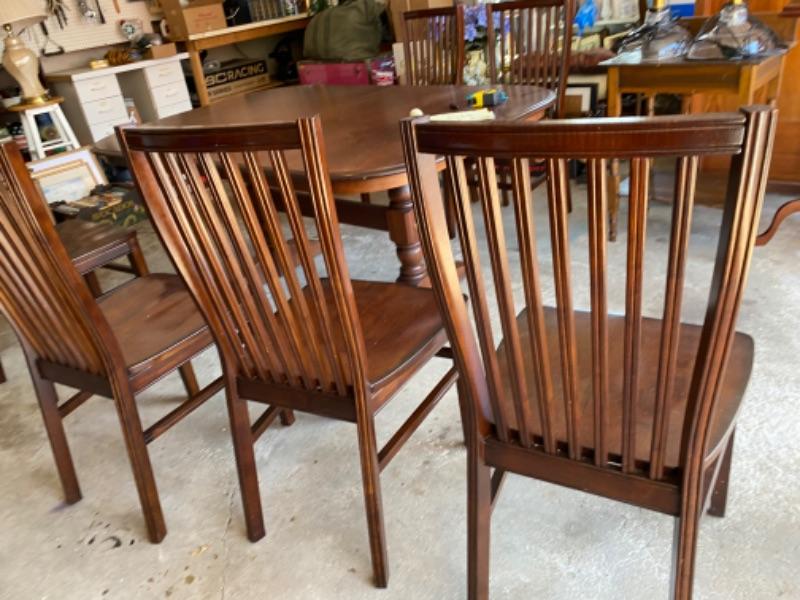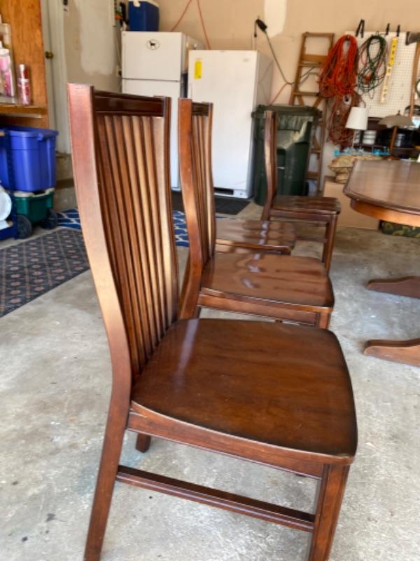 Great lot of mahogany finish dining chairs from Pier One with comfortable and stylish tall Shaker backs .Dimensions: 18.25"W x 20.75"D x 38.5"H