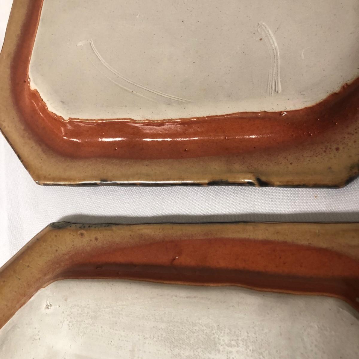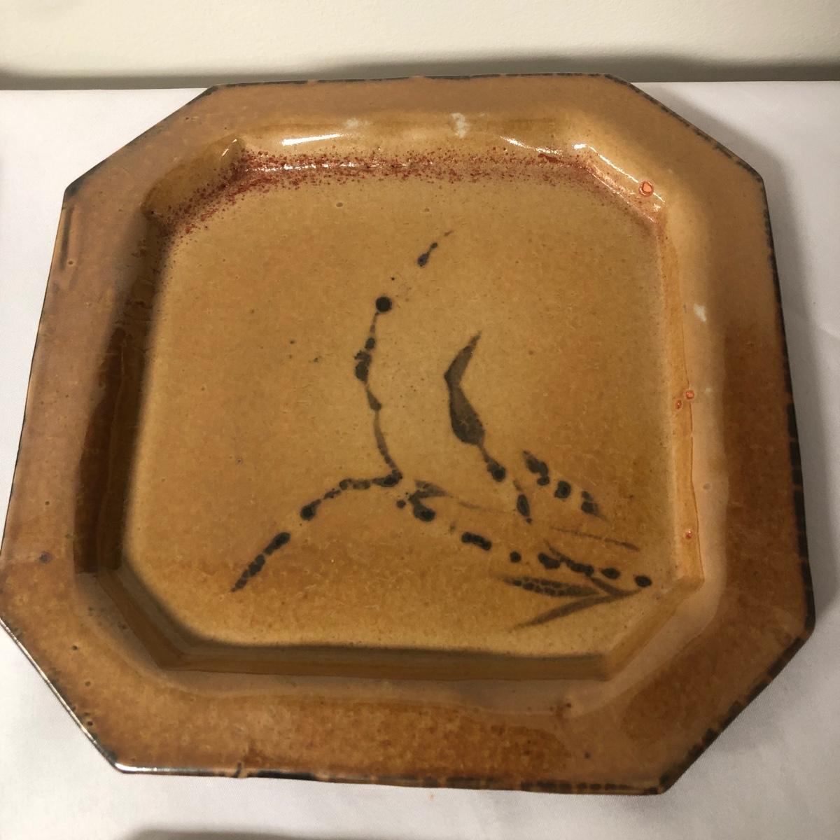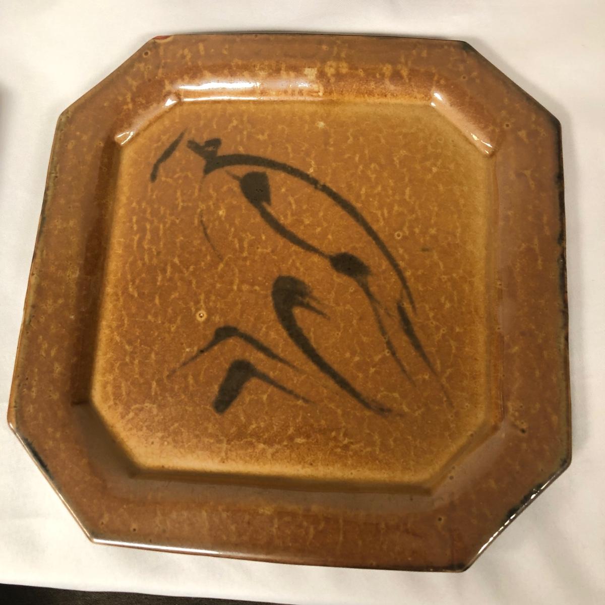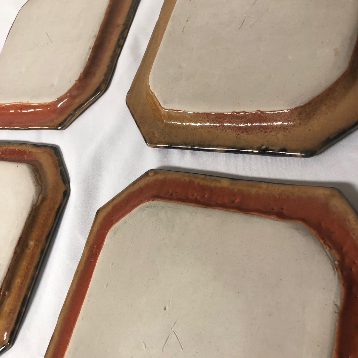 This lot includes six plates. Each plate is signed, with the same initals/symbol. Each plate is unique and handcrafted. Plates measure 11” x 11” each. Plates are sturdy; shipping Available.