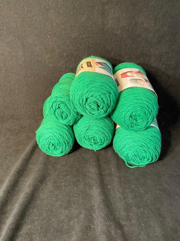 6 fat skeins of acrylic yarn in Kelly green