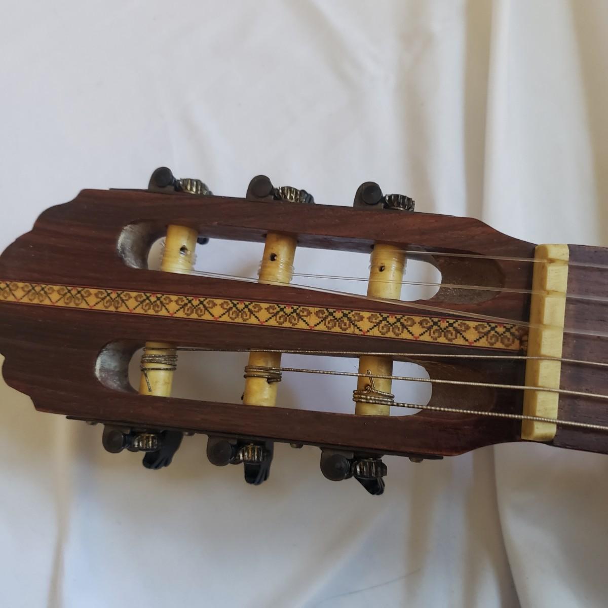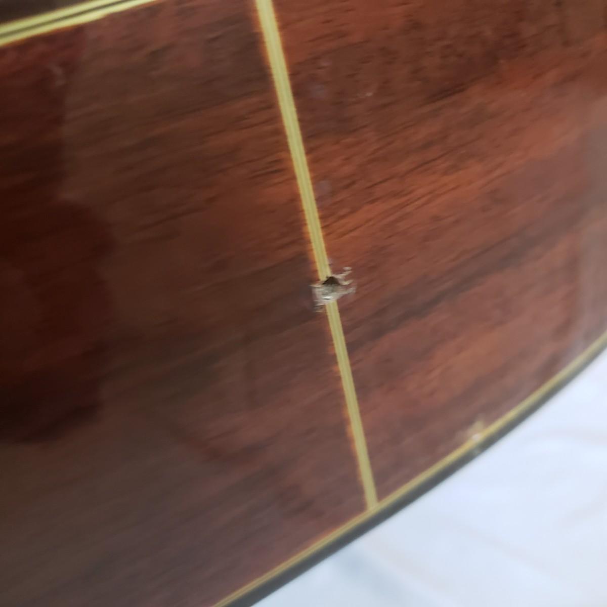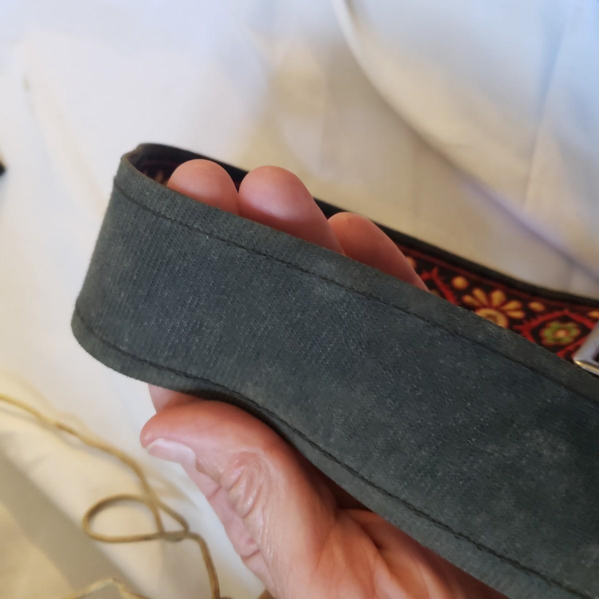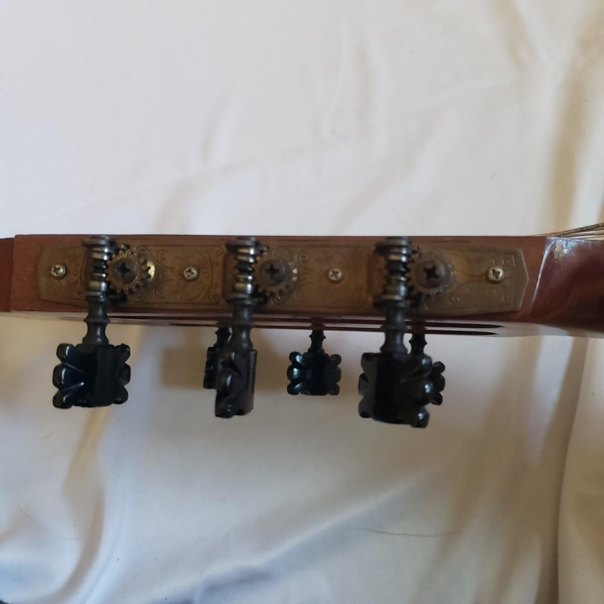 This lot features a Made in Japan six string guitar, a Boulder-Alpine Series soft guitar case, a Bobby Lee guitar strap and a case of various picks. The guitar measures approximately 15" x 4" x 40"H. There are some minor wears on the finish and the strap peg is missing. The case is Boulder brand, Alpine Series and measures 16" x 6" x 42"H. This soft case has three pockets in the front and backpack straps.