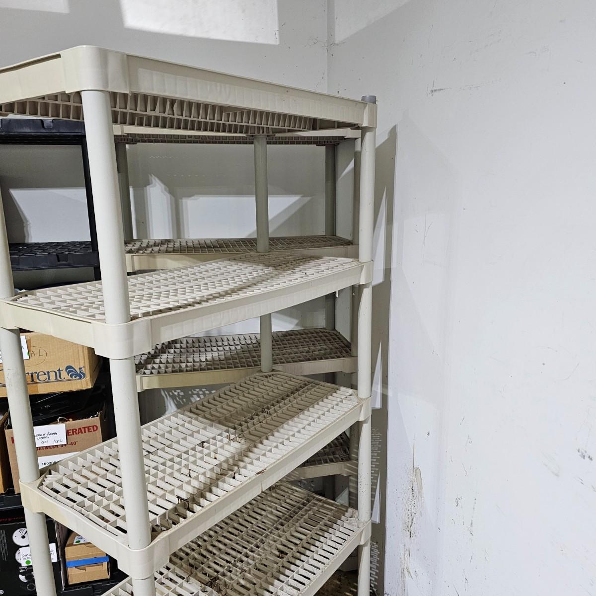 Six Tan Plastic Storage Shelves (G-JS)