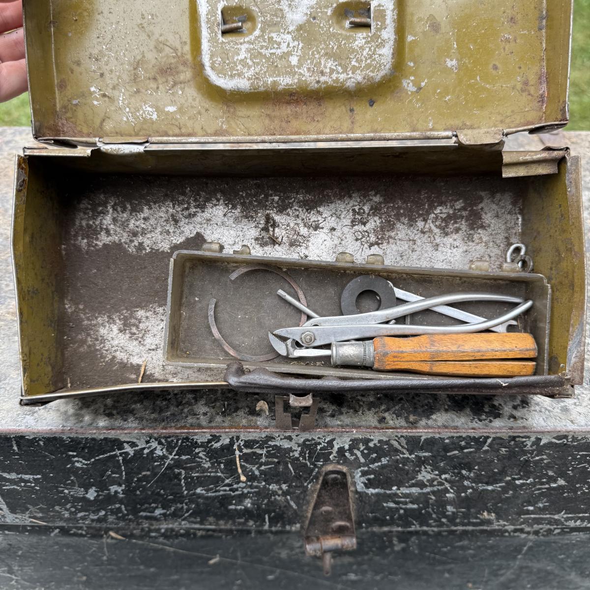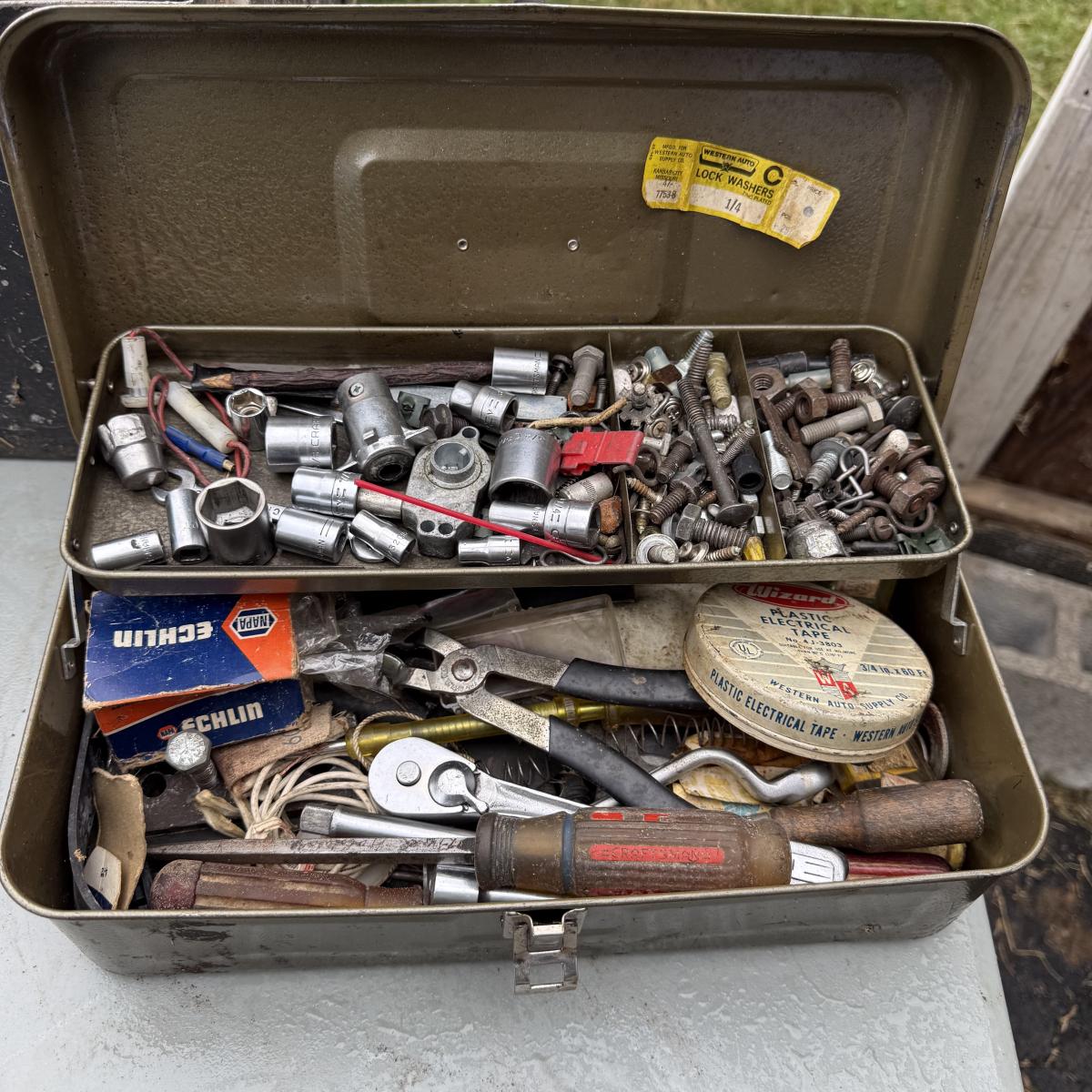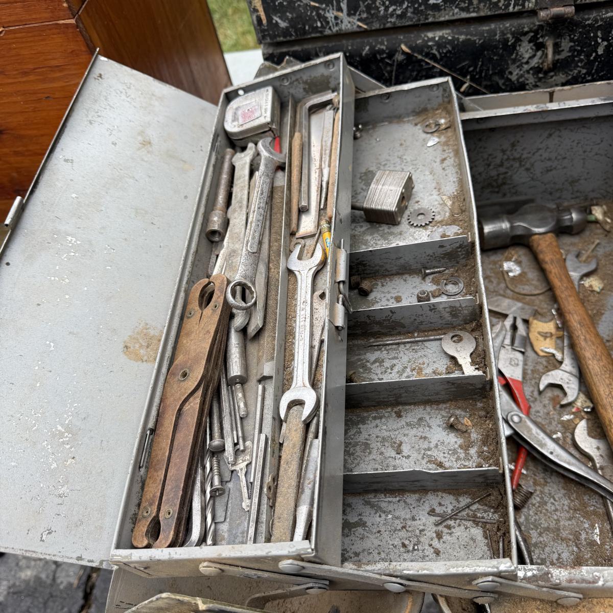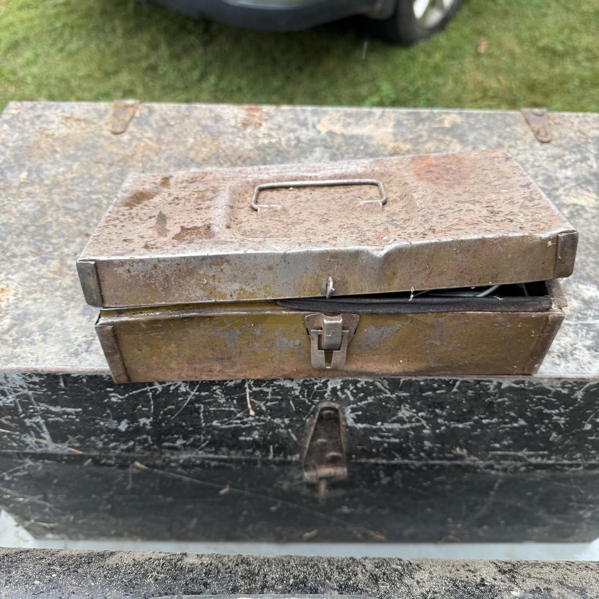 This lot contains six tool boxes five of which are metal and the sixth which is wood. The wood tool boxes measures 27” x 13” x 14.5”H and the smallest metal tool box measures 9.5” x 4.5” x 3”H. Also included are the contents of the tool boxes, see pictures for full inventory. Local pick up only.