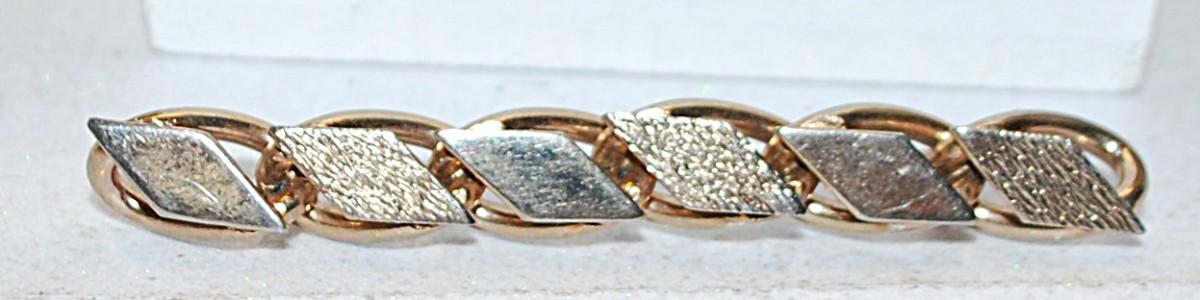 Six Trapezoids on a Chain Link Base BROOCH (3" x ½") on a Gold Tone Setting