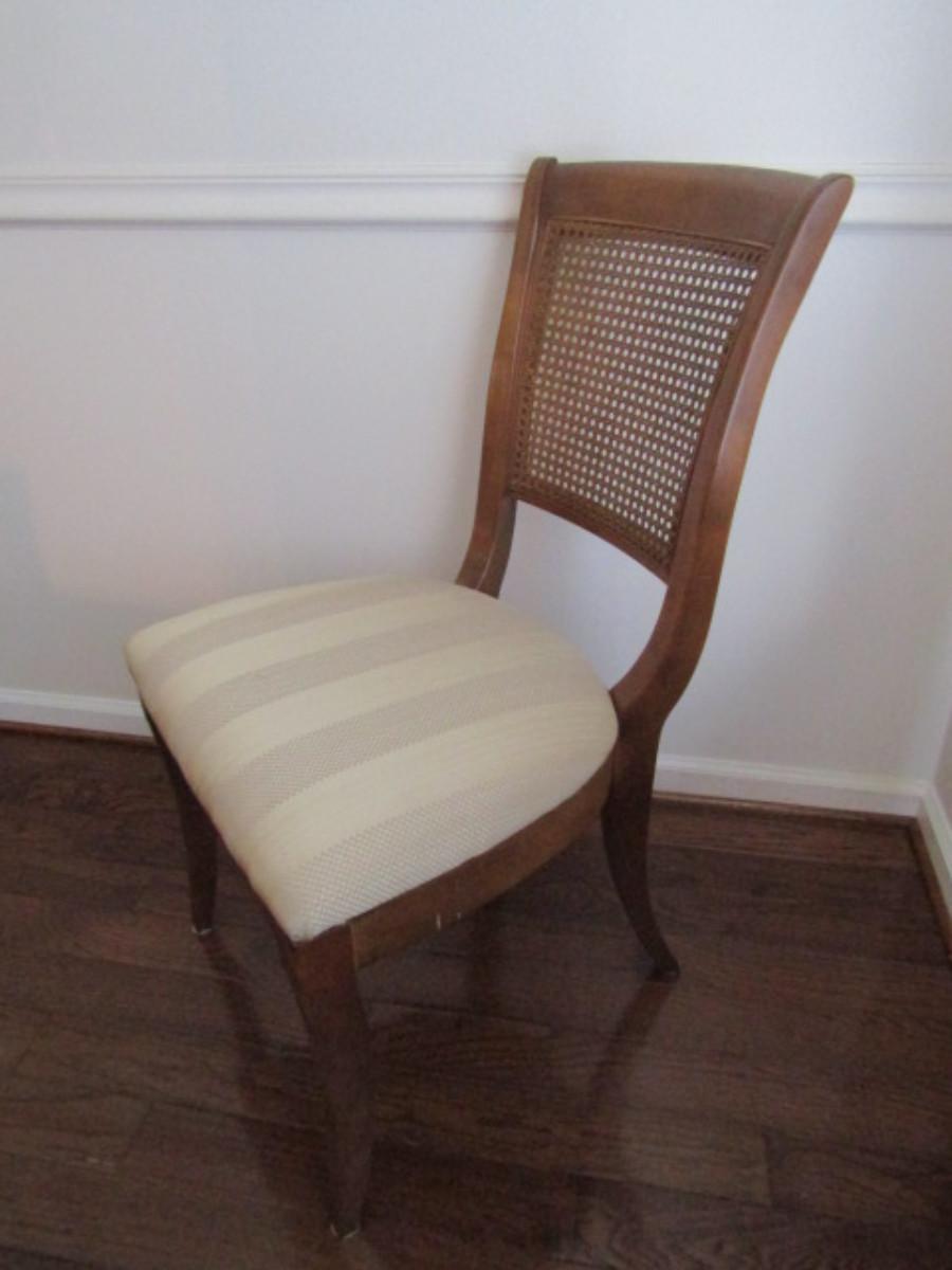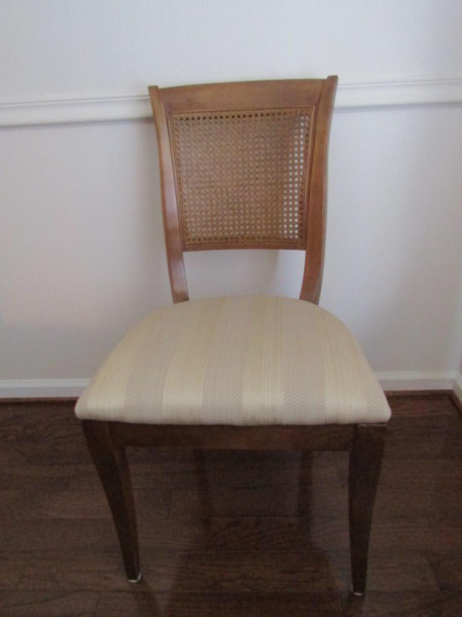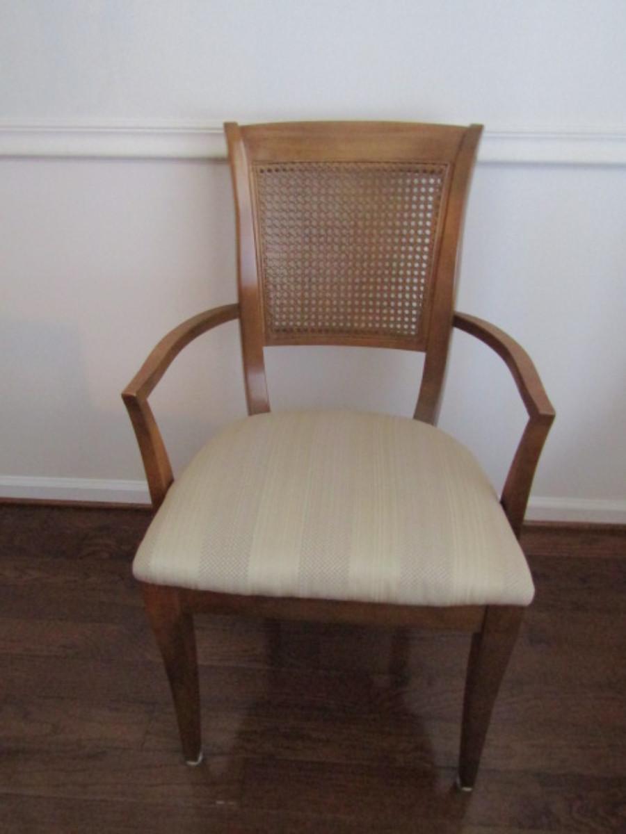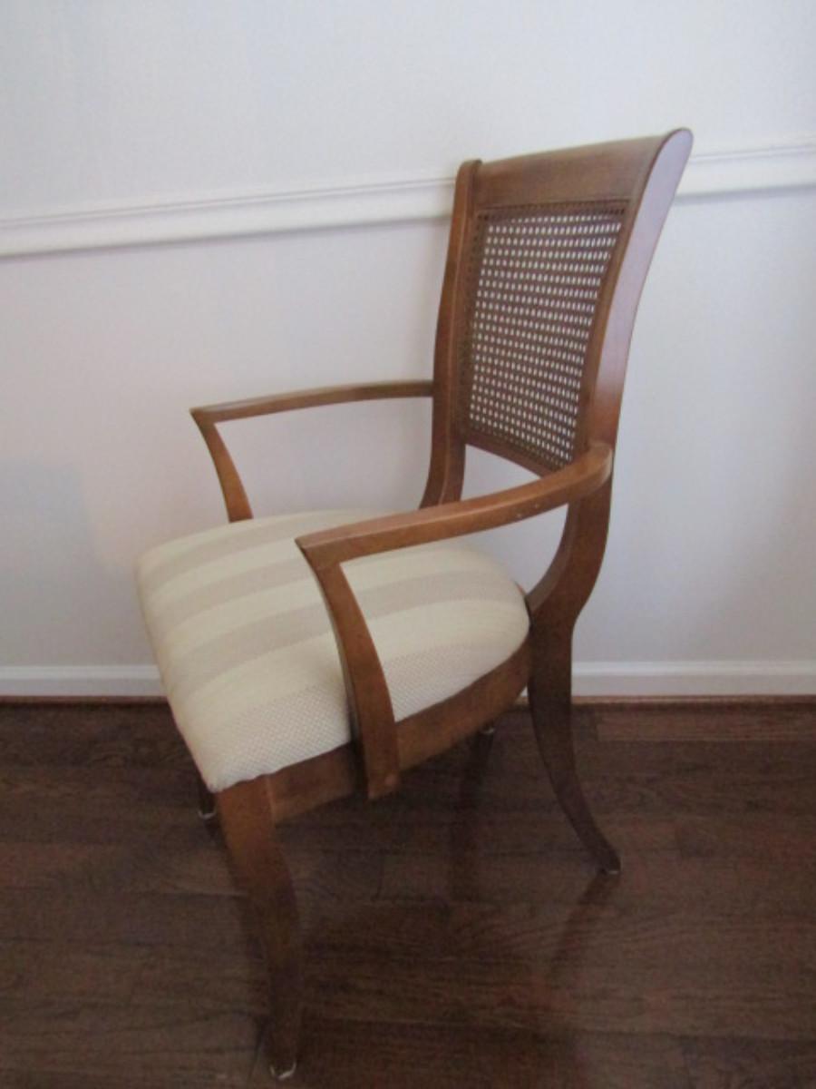 Six Upholstered Dining Chairs with Cane Backs Made by Thomasville- 4 are Side Chairs, 2 Have Arm Rests