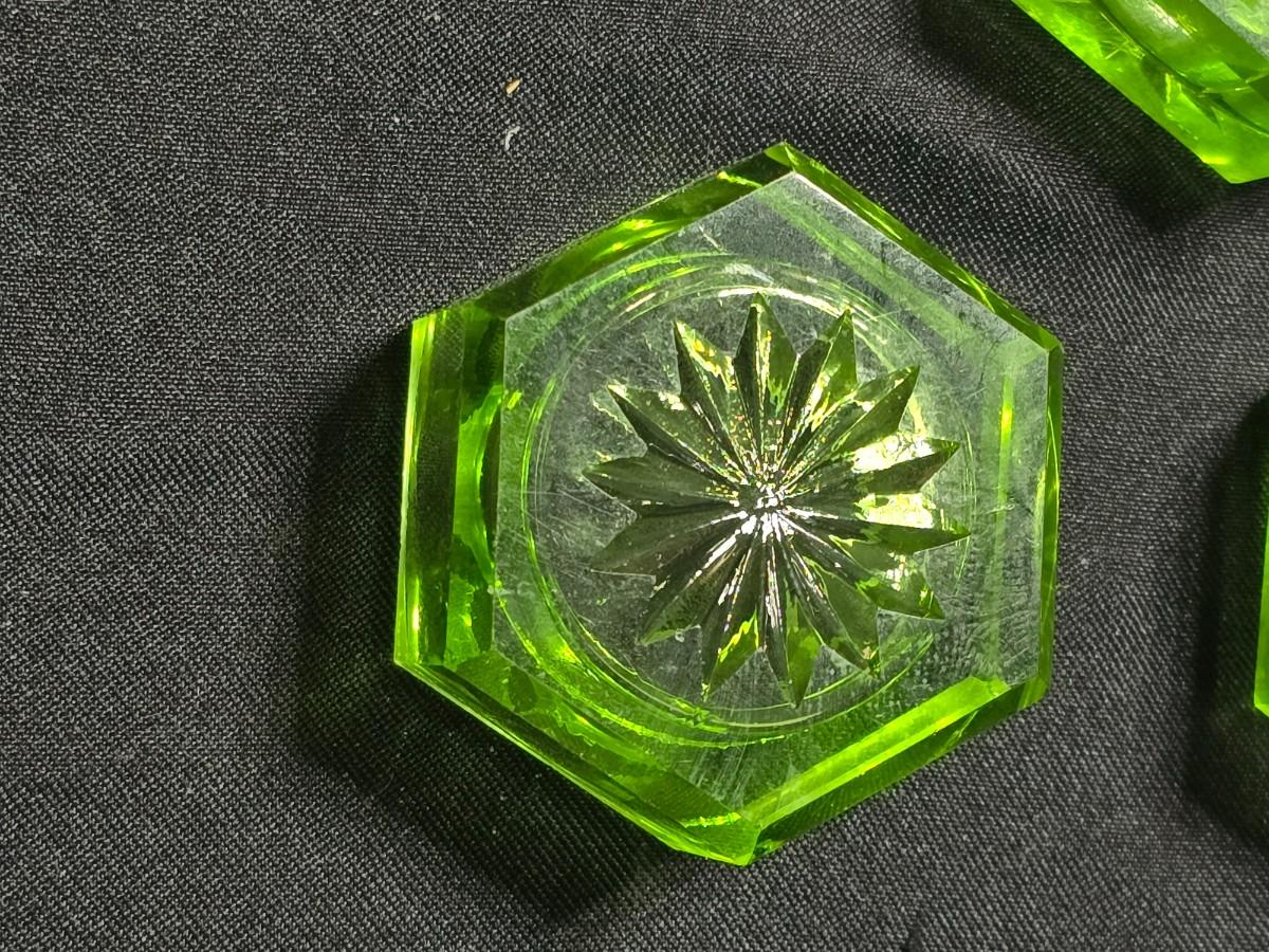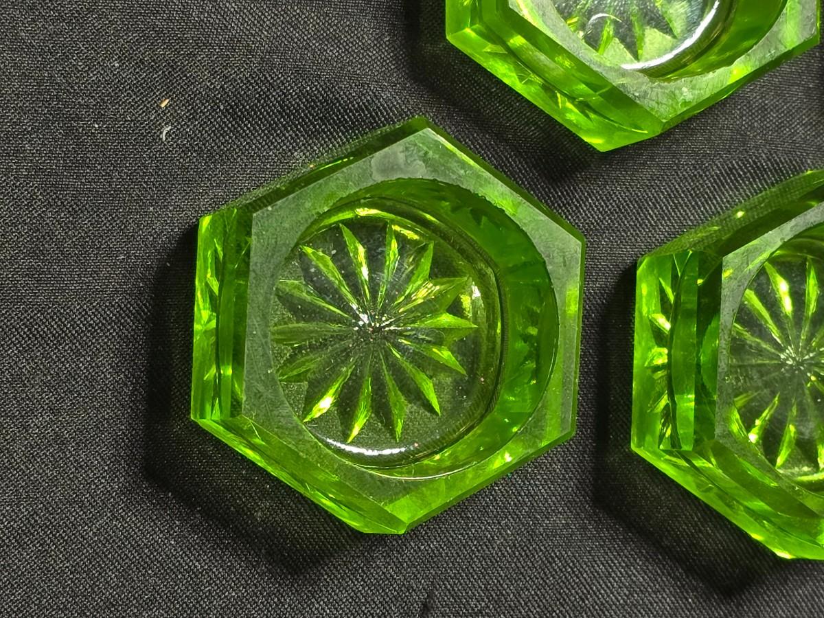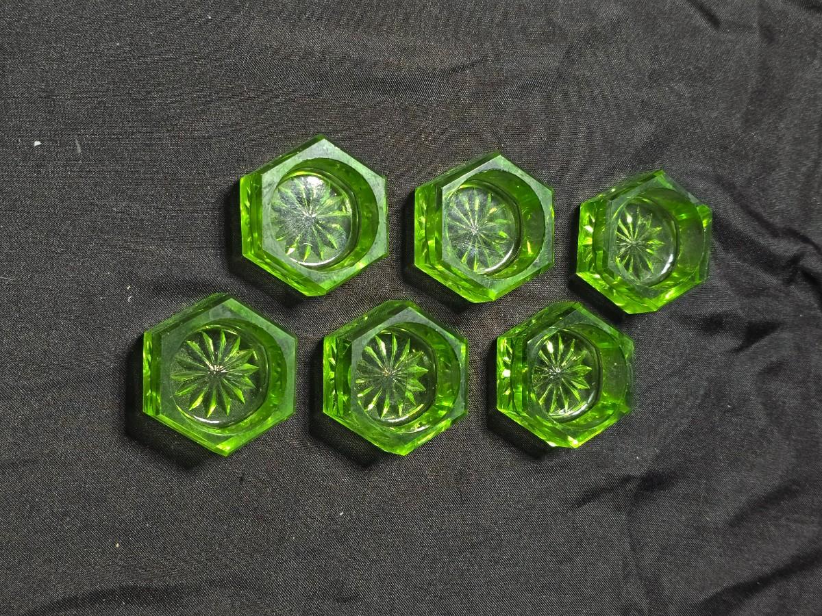 Six vintage Cambridge Glass Company emerald, green glass open salt cellars / salt dips