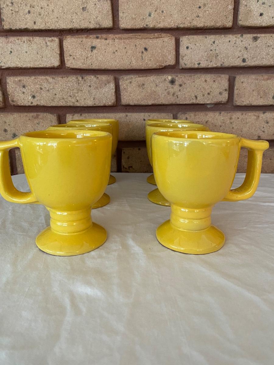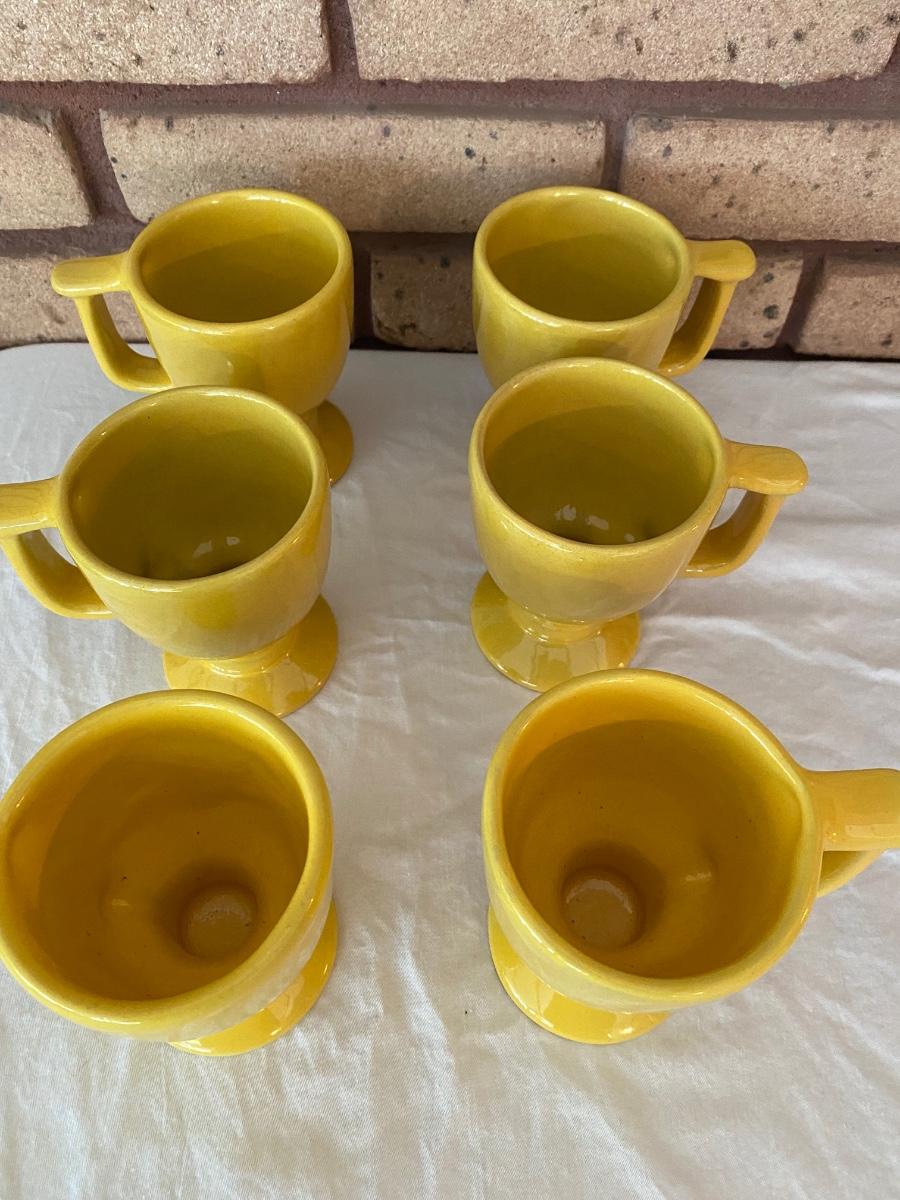 Six Vintage yellow Frankoma mugs. Exc condition. Approx 4-1/2h x 3” dia