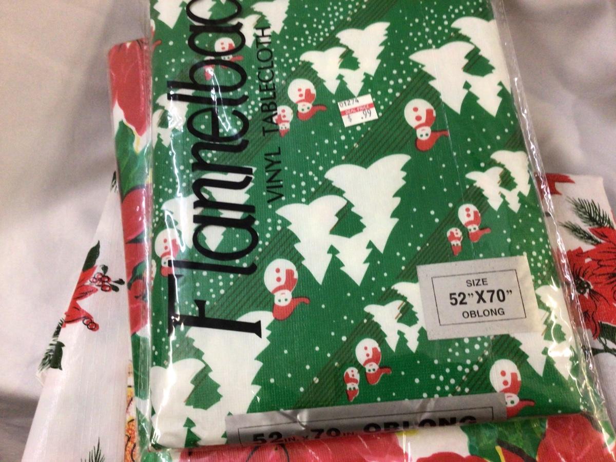 You get 3 open and 3 sealed vinyl tables clothes. Variety of sizes and themes.