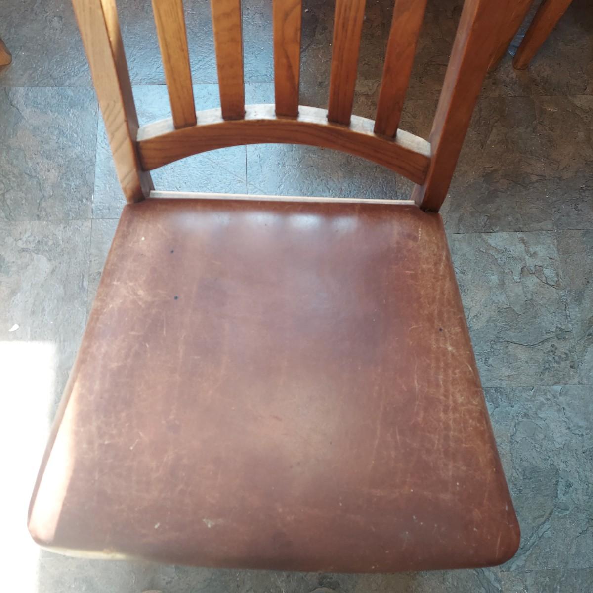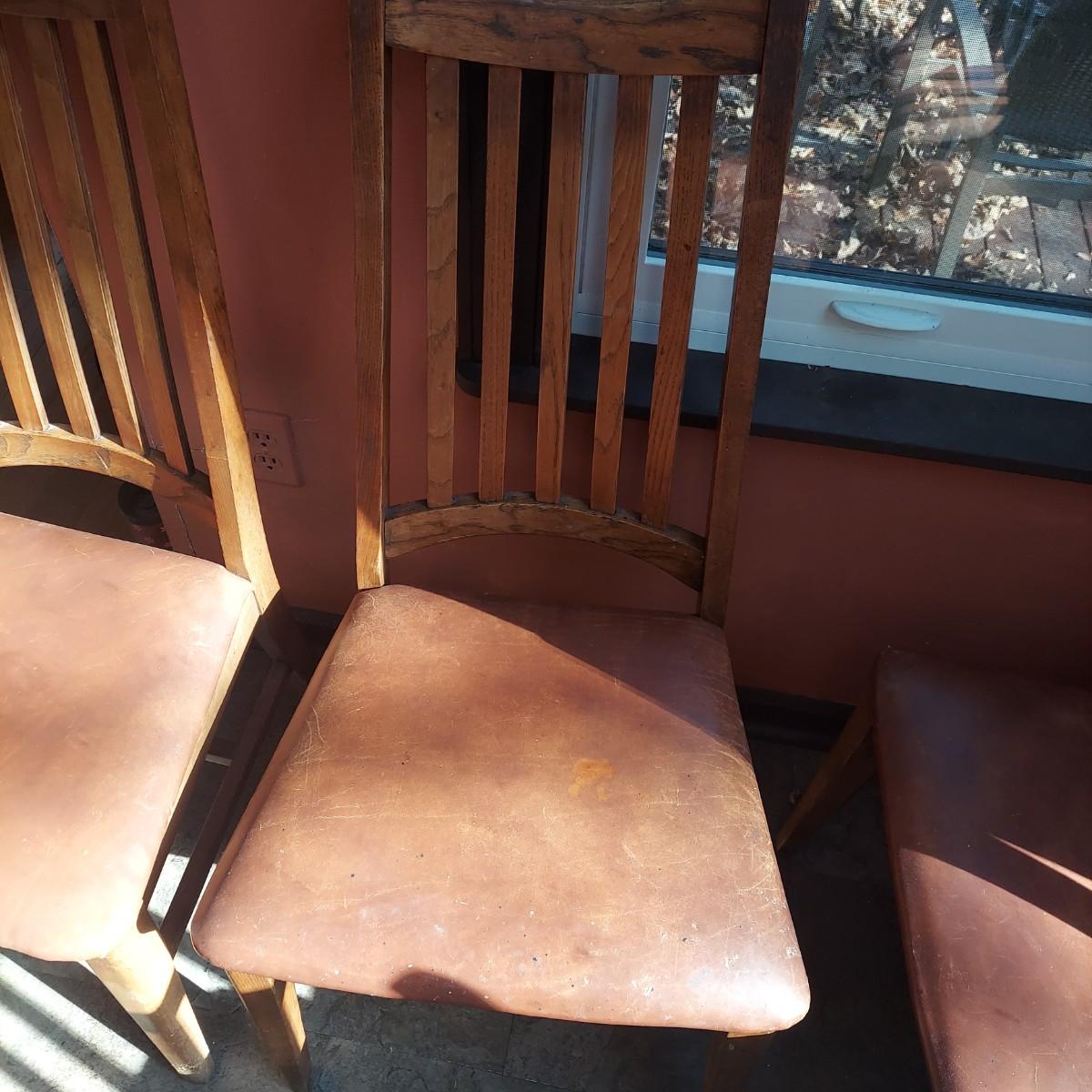 Six Wooden Dining Chairs w/ Leather Seats (K-BBL)