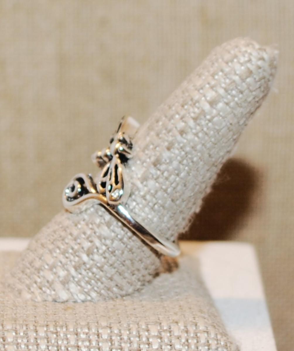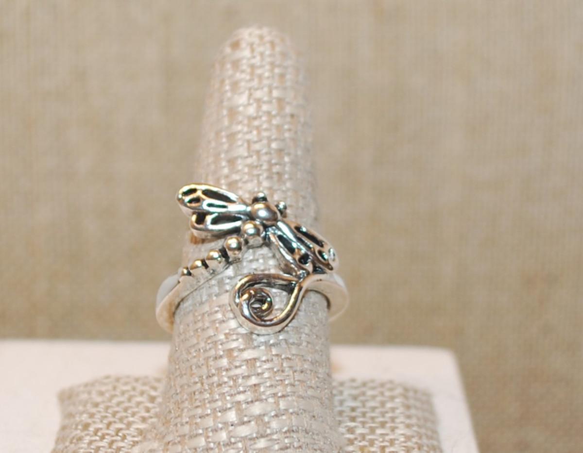 Size 10½ All Silver Style No Stones "Dragonfly" Ring with Swirled Loop on a Silver Tone Band (6.2g)