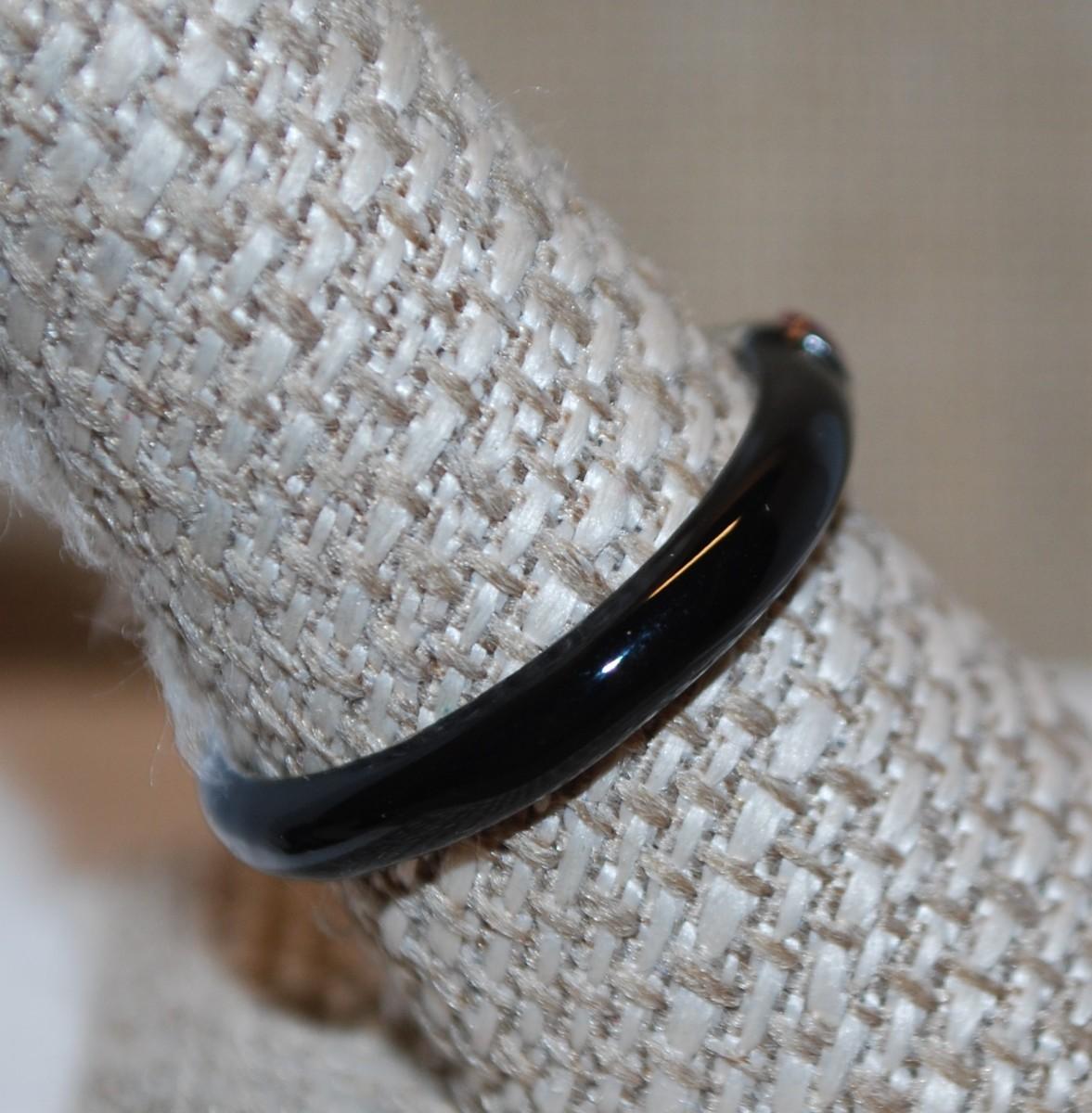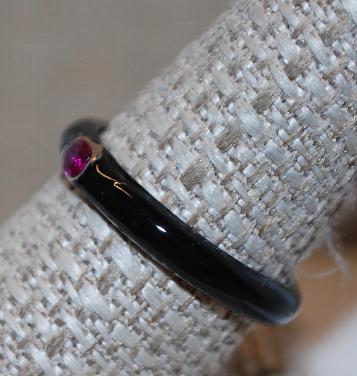 Size 10 BLACK Enamel Ring with Single Cranberry Red Round Stone on a Silver Tone Band (2.6g)