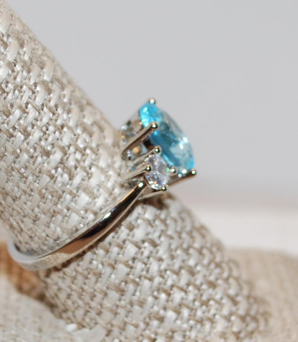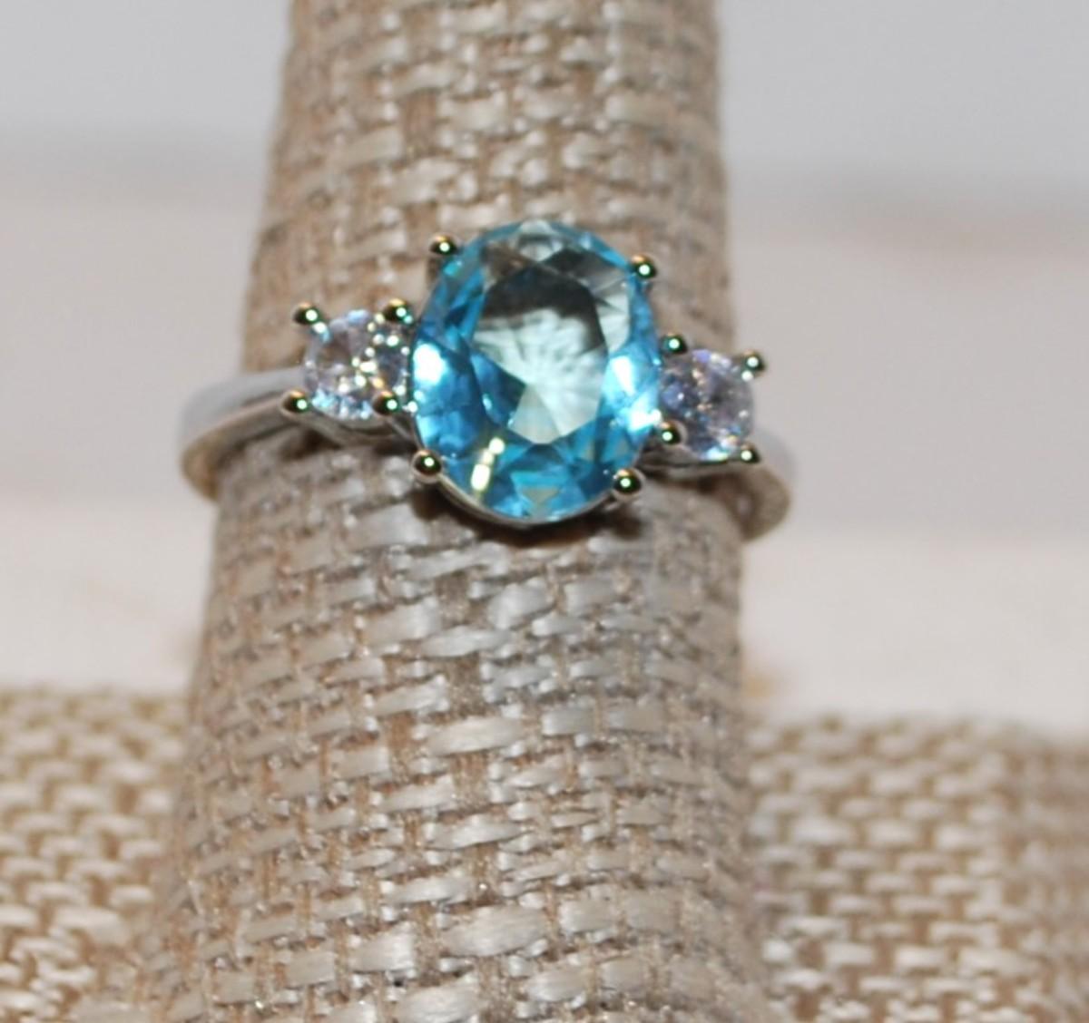 Size 10¼ Cushion-Cut 4 Prong Clear Blue Stone & 2 Clear Accents Ring (3.2g)