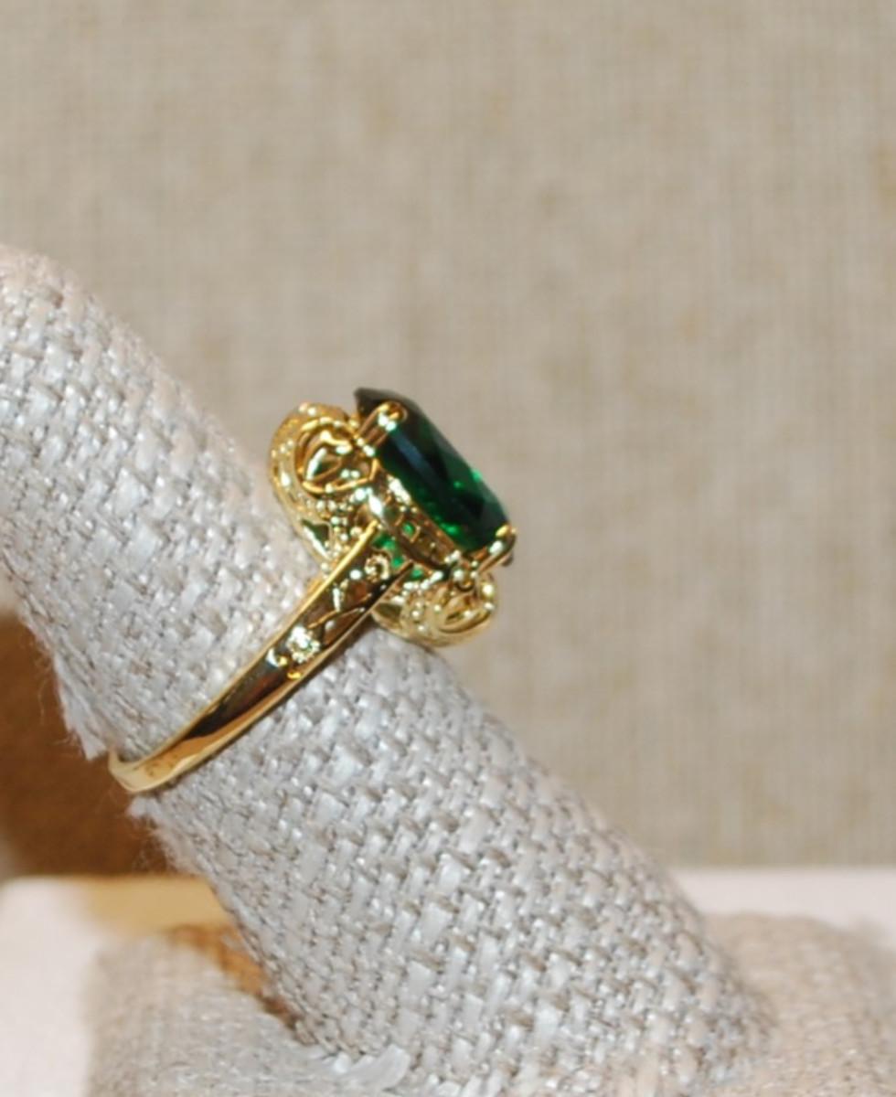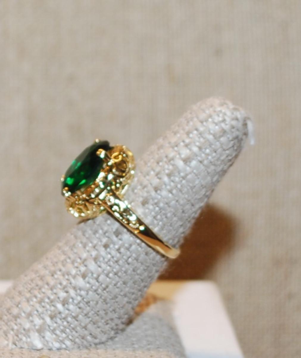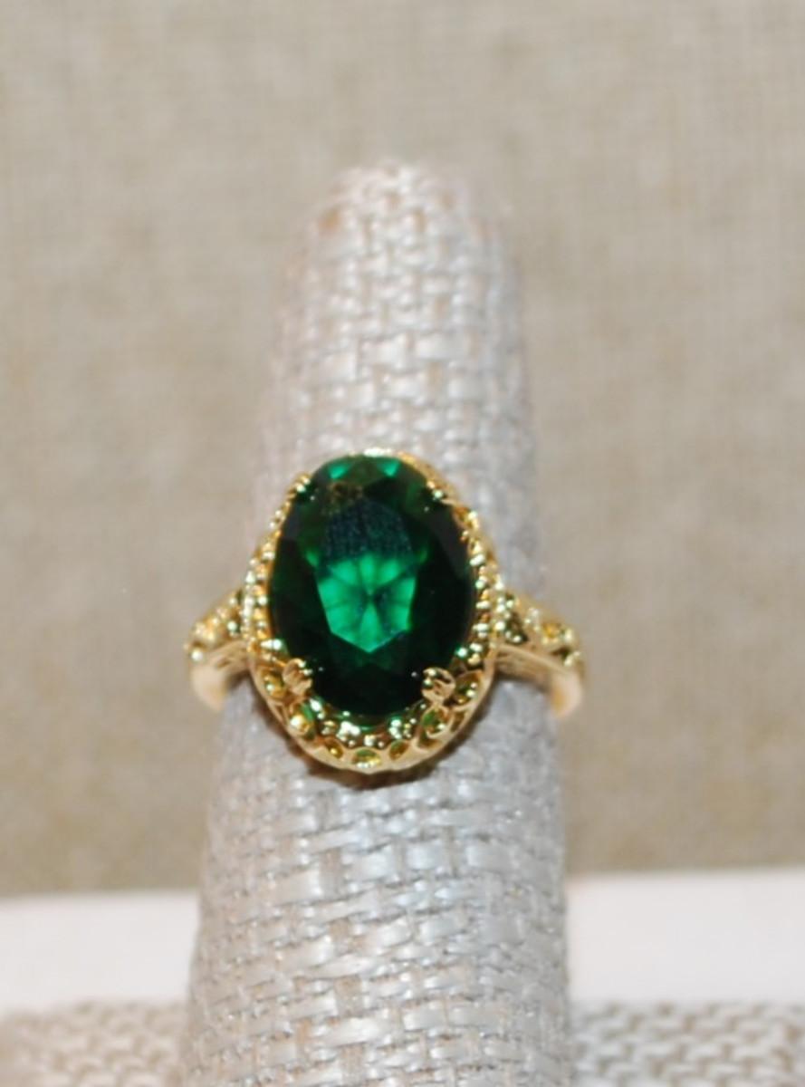 Size 10¼ Deep Green Stone Ring on a 4 Prong Nest Setting with a Gold Tone Band (4.6g)
