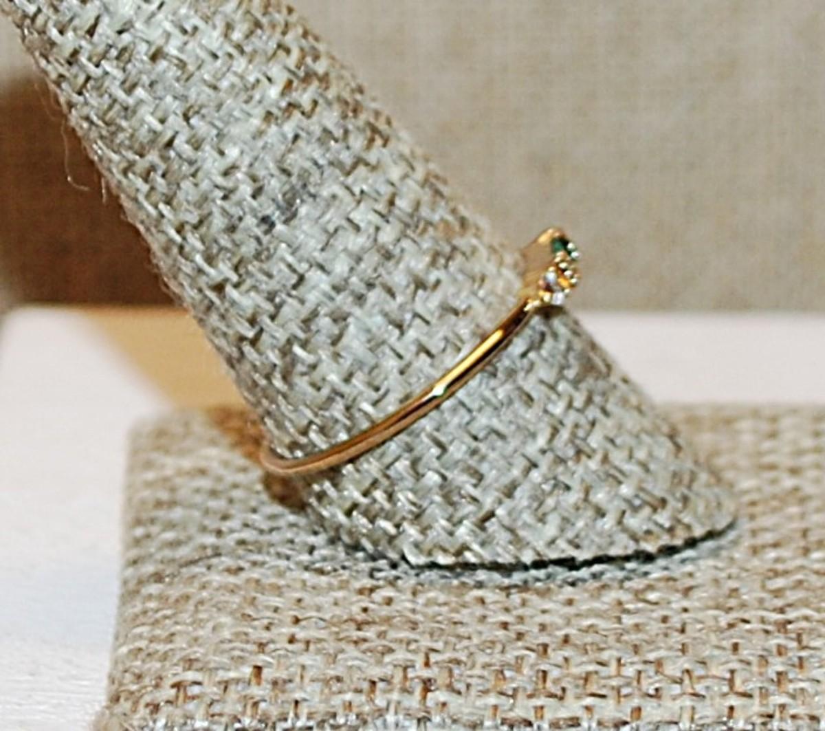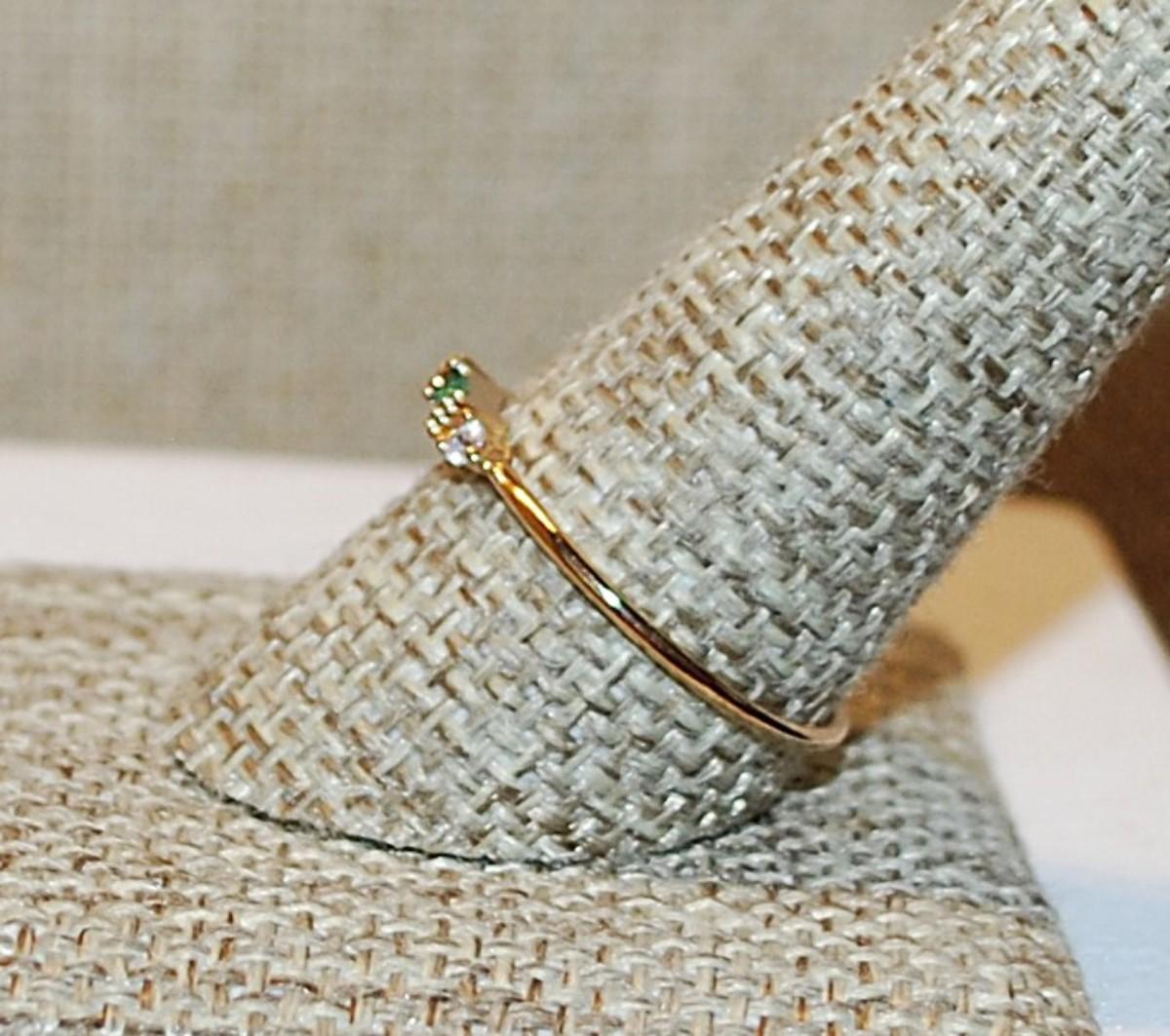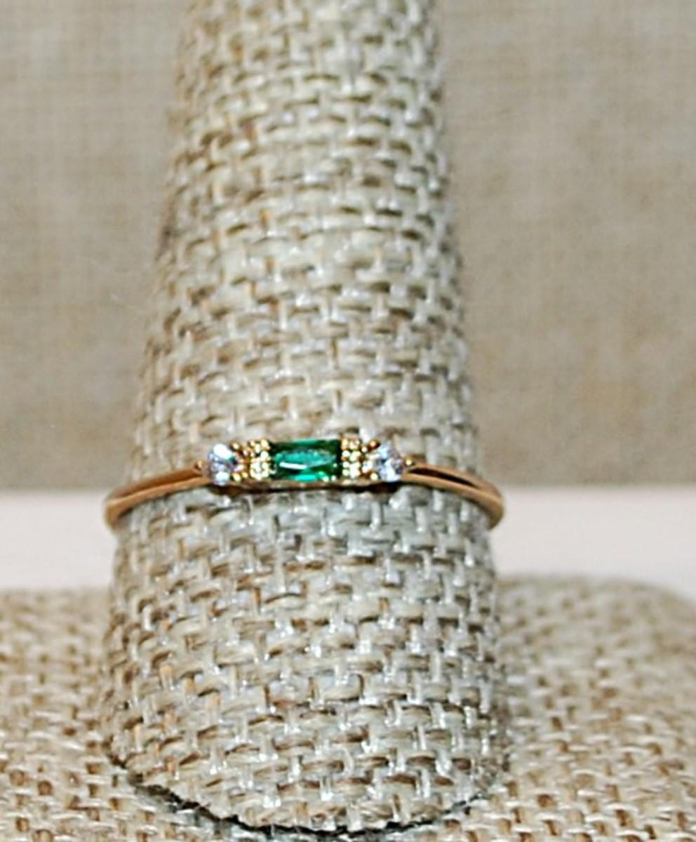 Size 10½ Delicate GREEN Horizontal Stone Ring with 2 Single Stone Accents on a Gold Tone Band (1.0g)