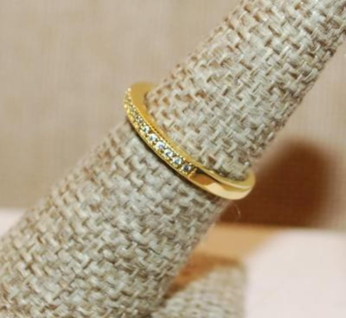 Size 10 Delicate Half Infinity Ring with Single Row of Tiny Stones on a Gold Tone Band (4.0g)