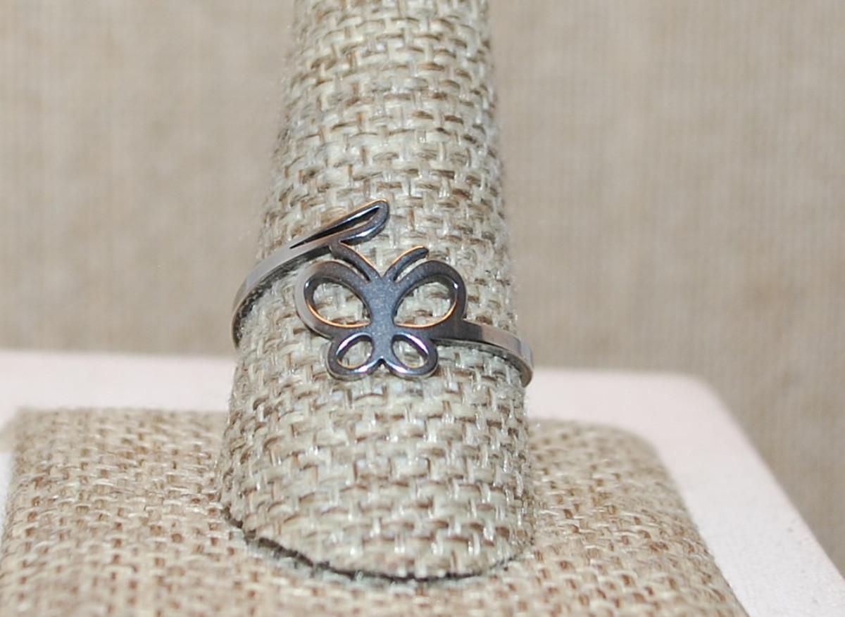 Size 10½ Delicate STAINLESS STEEL Ring with "BUTTERFLY & BRANCH DESIGN" on a Silver Colored Band (1.3g)