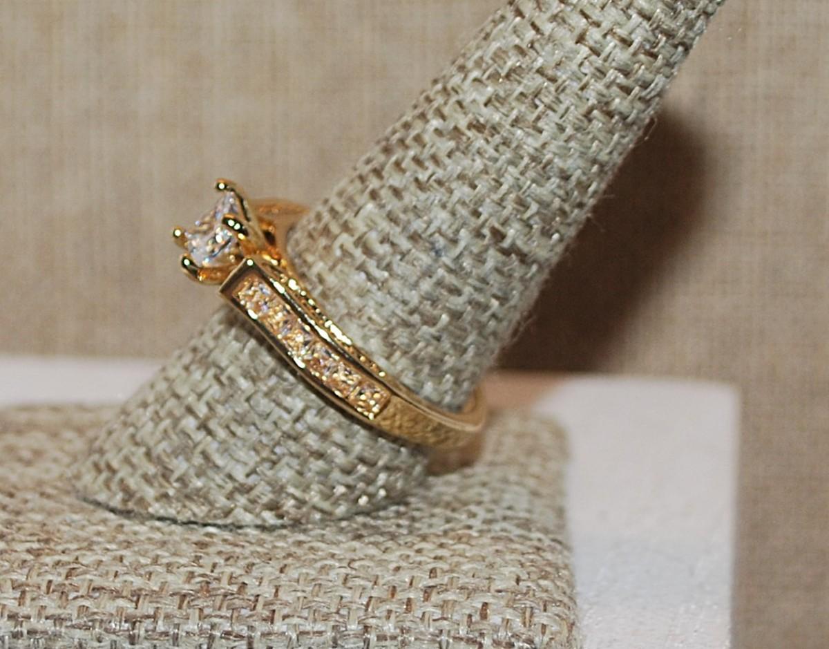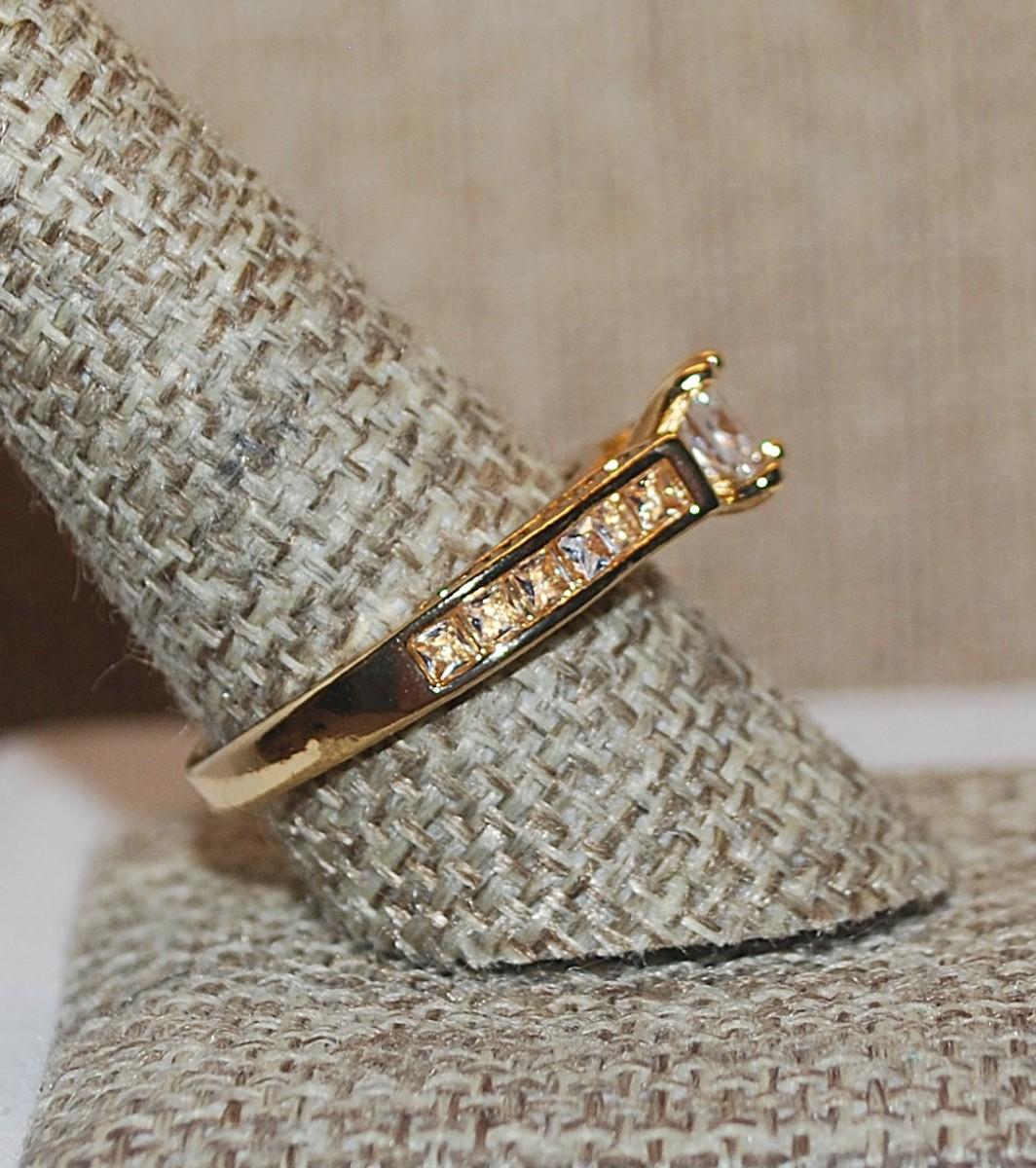 Size 10 Half Infinity Square Main Stone Ring with 12 Stone Side Accents on a Gold Tone Band (4.1g)