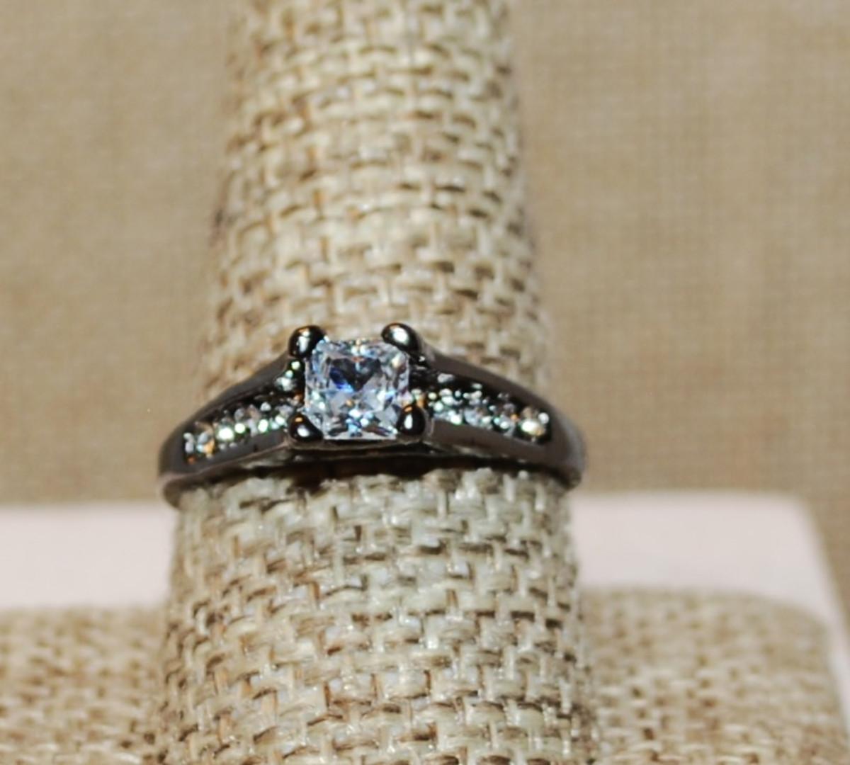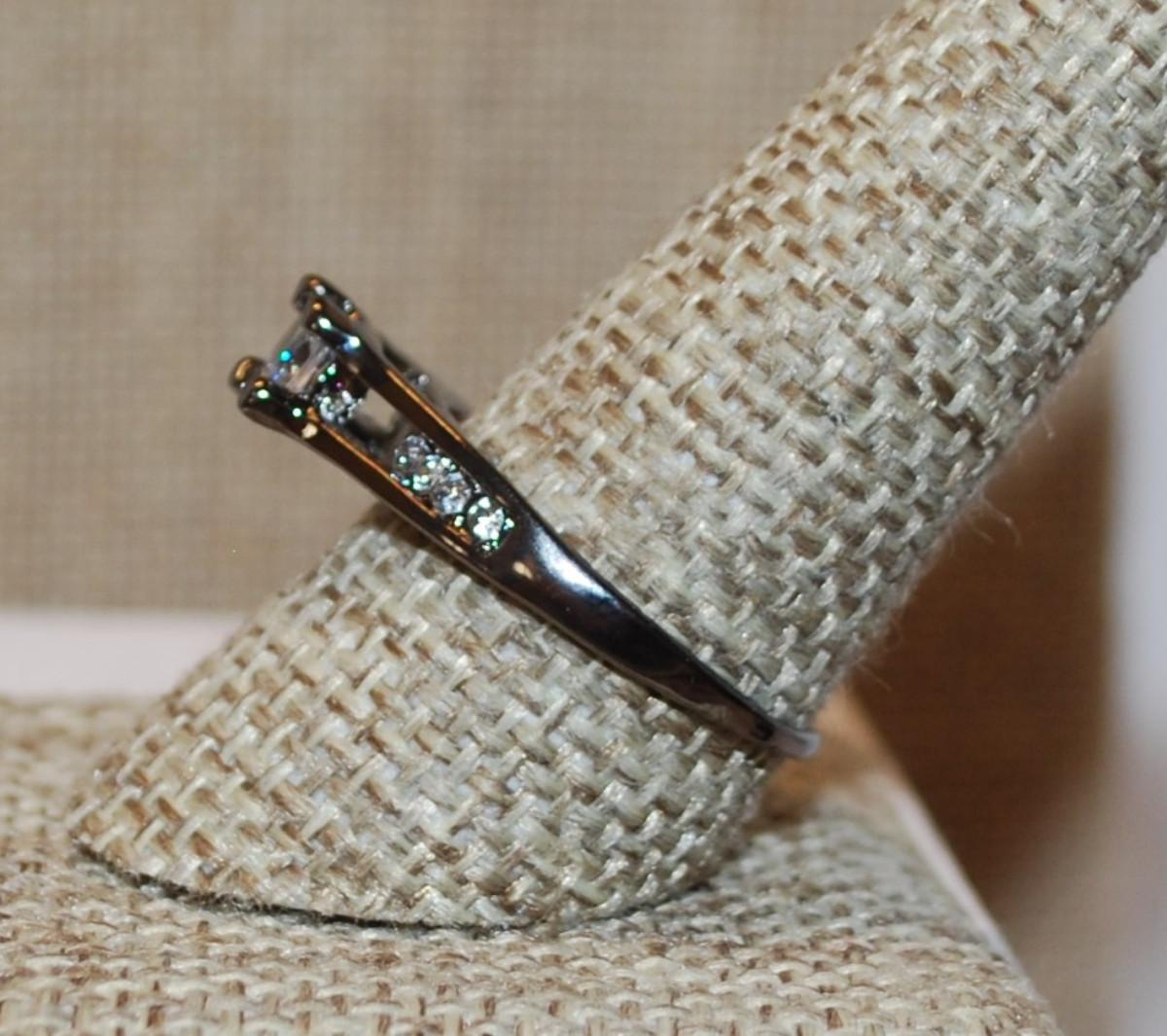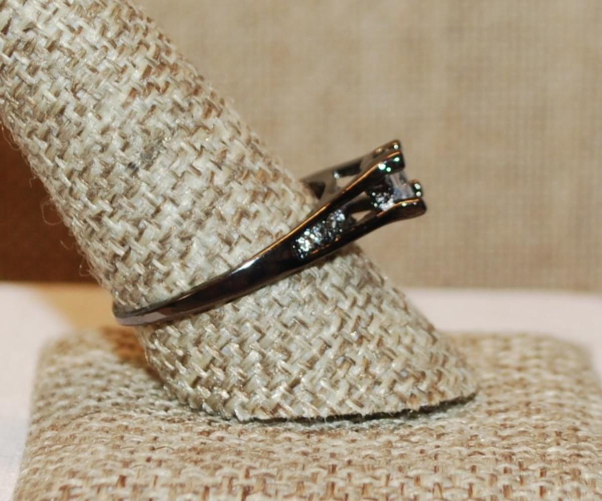Size 10 High Rise Azure Cut 4 Prong Clear Main Stone & Side Accents on a BLACK Tone Band (2.6g)