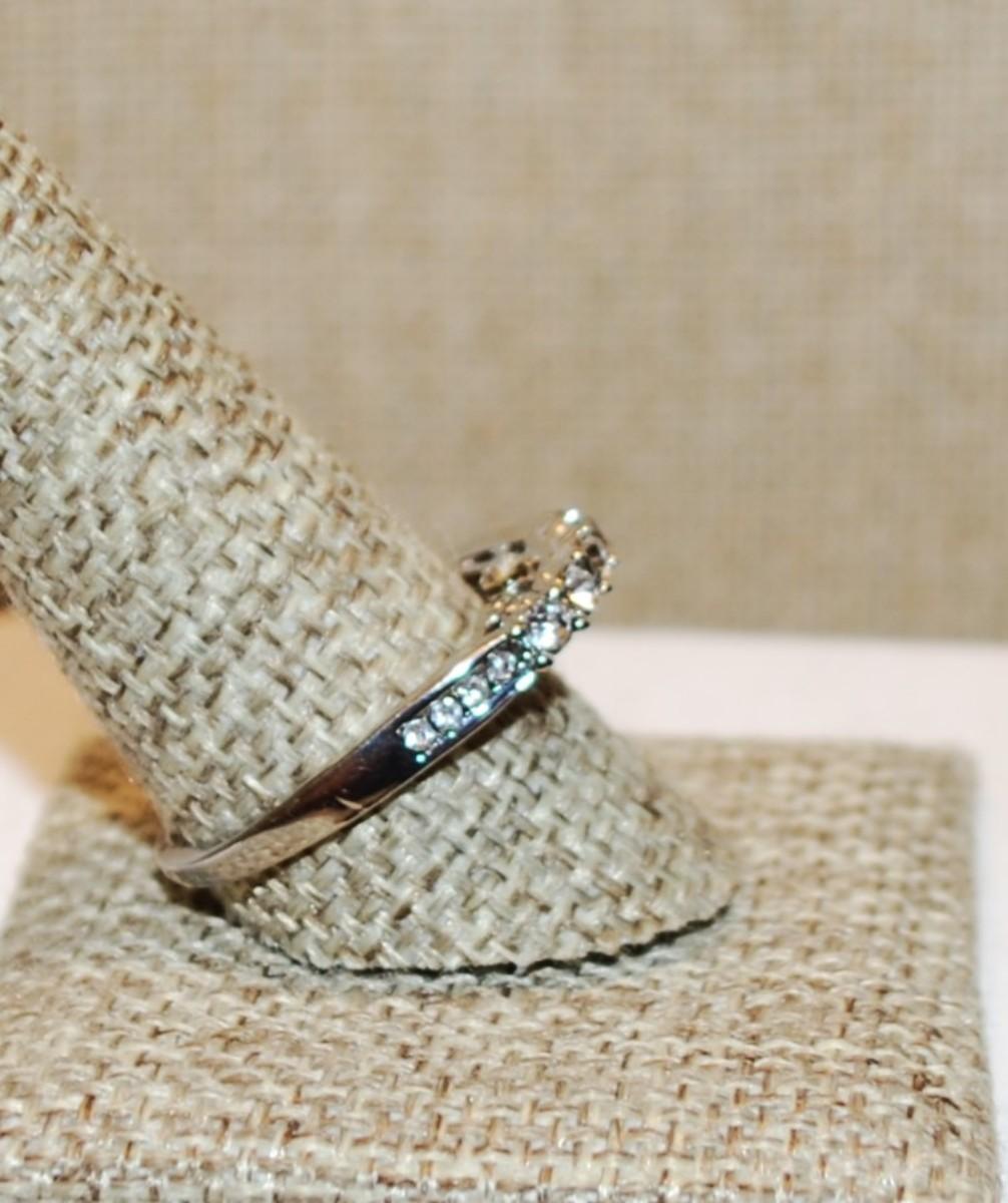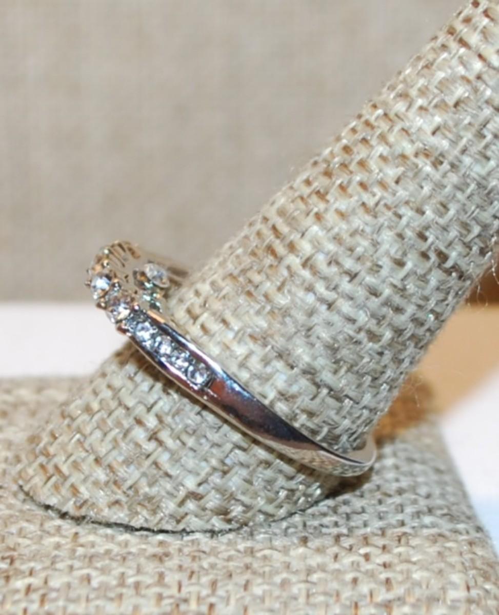Size 10¾ High Row of Clear Stones Ring with Under Setting Accents on a Silver Tone Band (3.0g)