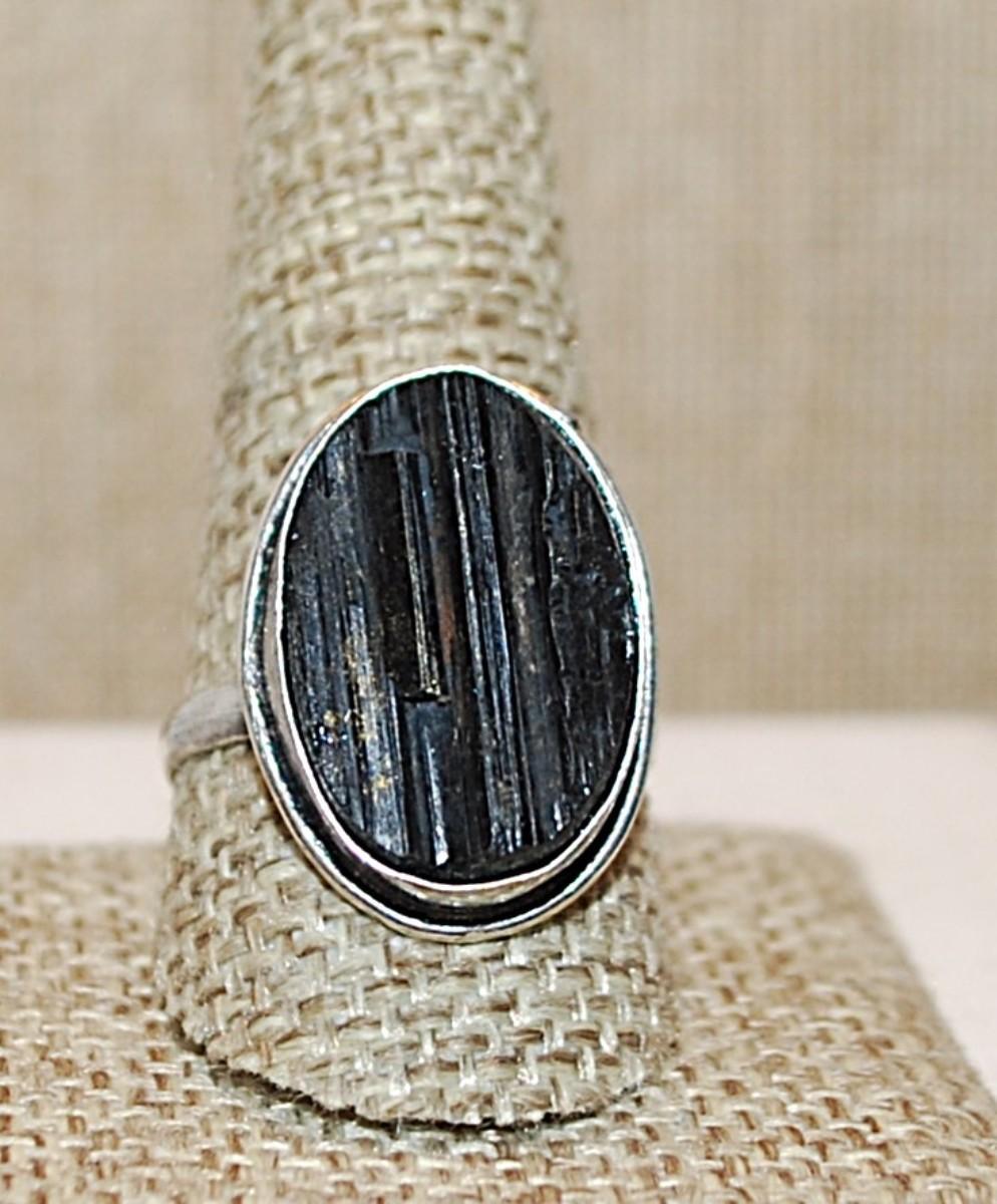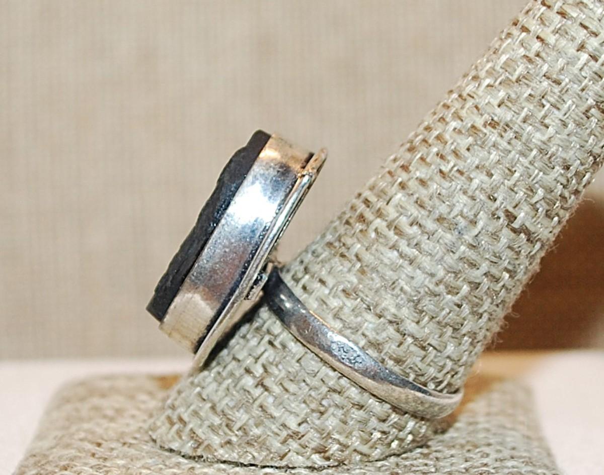 Size 10½ Marked .925 OVAL Shaped BLACK TITANIUM Gemstone Ring on a Silver-Plated Band (6.9g)
