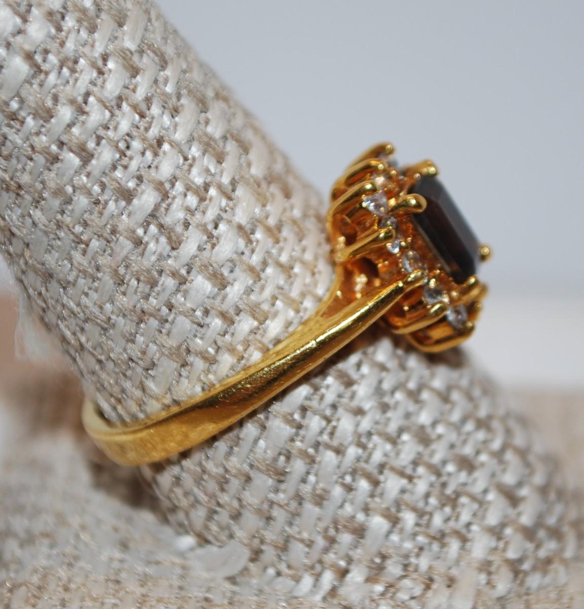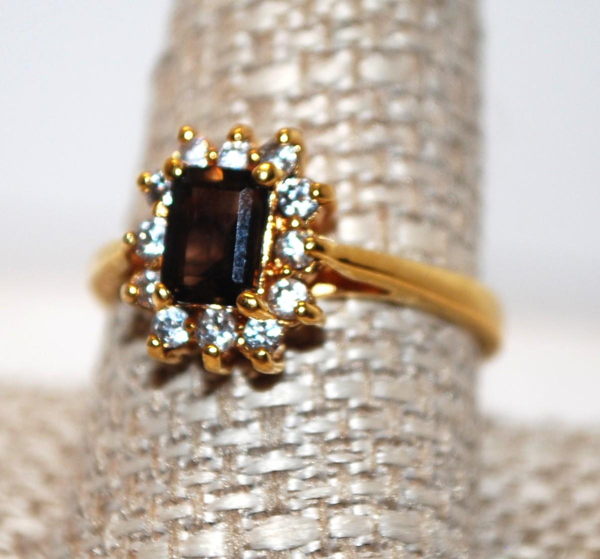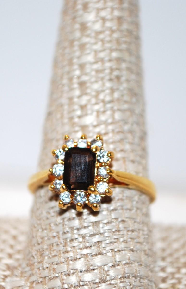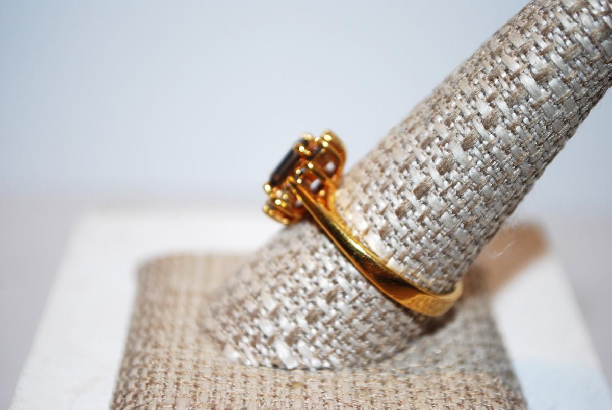 Size 10 Unique Emerald-Cut Light BROWN Topaz-Like Stone Ring with Clear Stones Surround (4.2g)