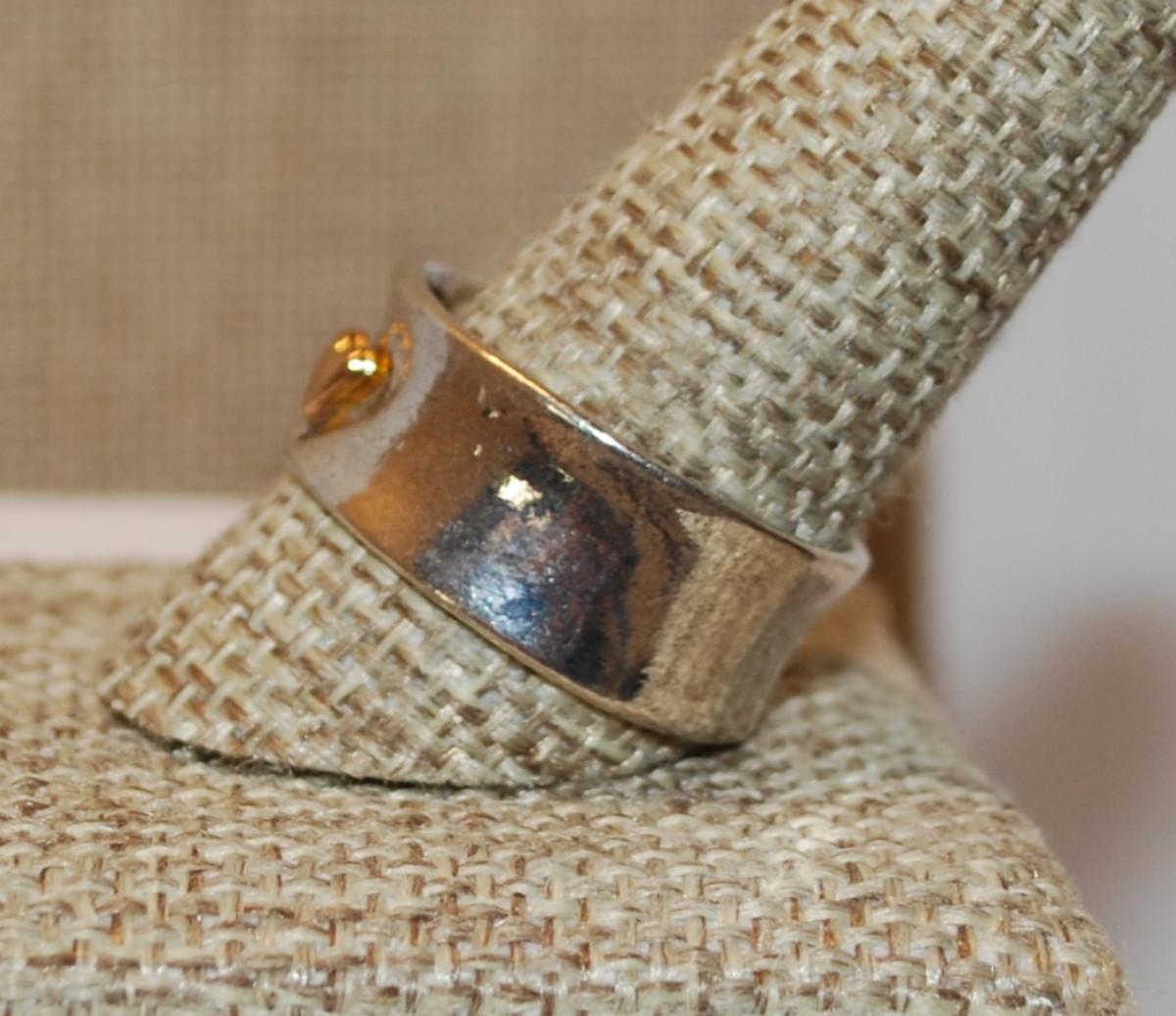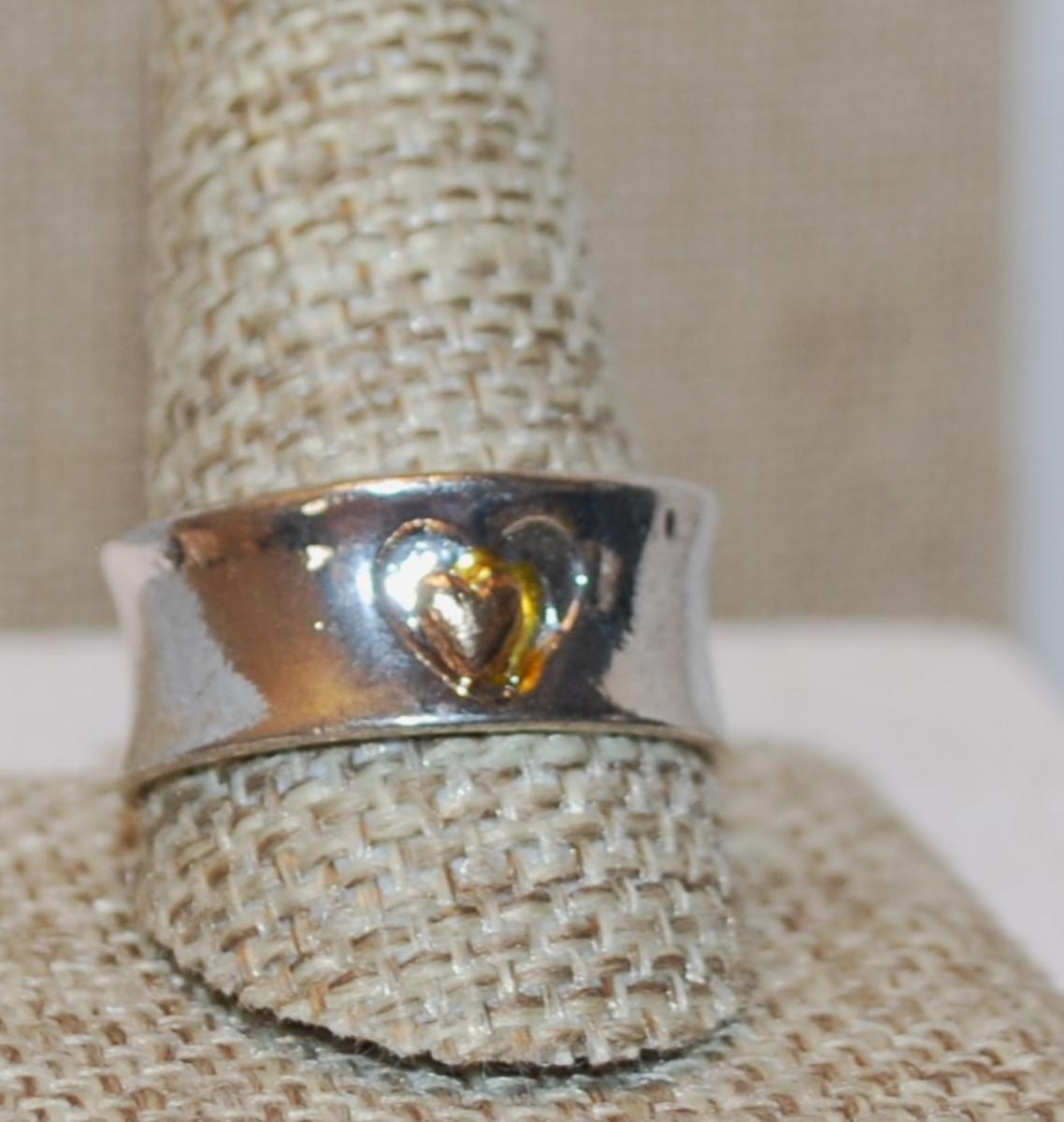 Size 11 Marked .925 Gold Colored Small HEART Ring on a Solid Silver Band (5.3g)