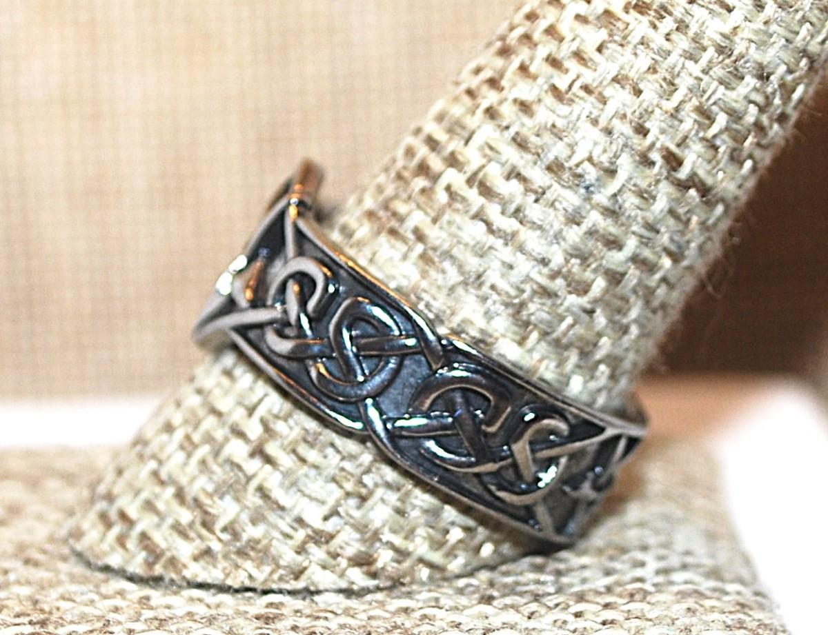 Size 11 Metal No-Stones "Interlocking STAR" Ring on a Solid Silver Tone Band (6.7g)