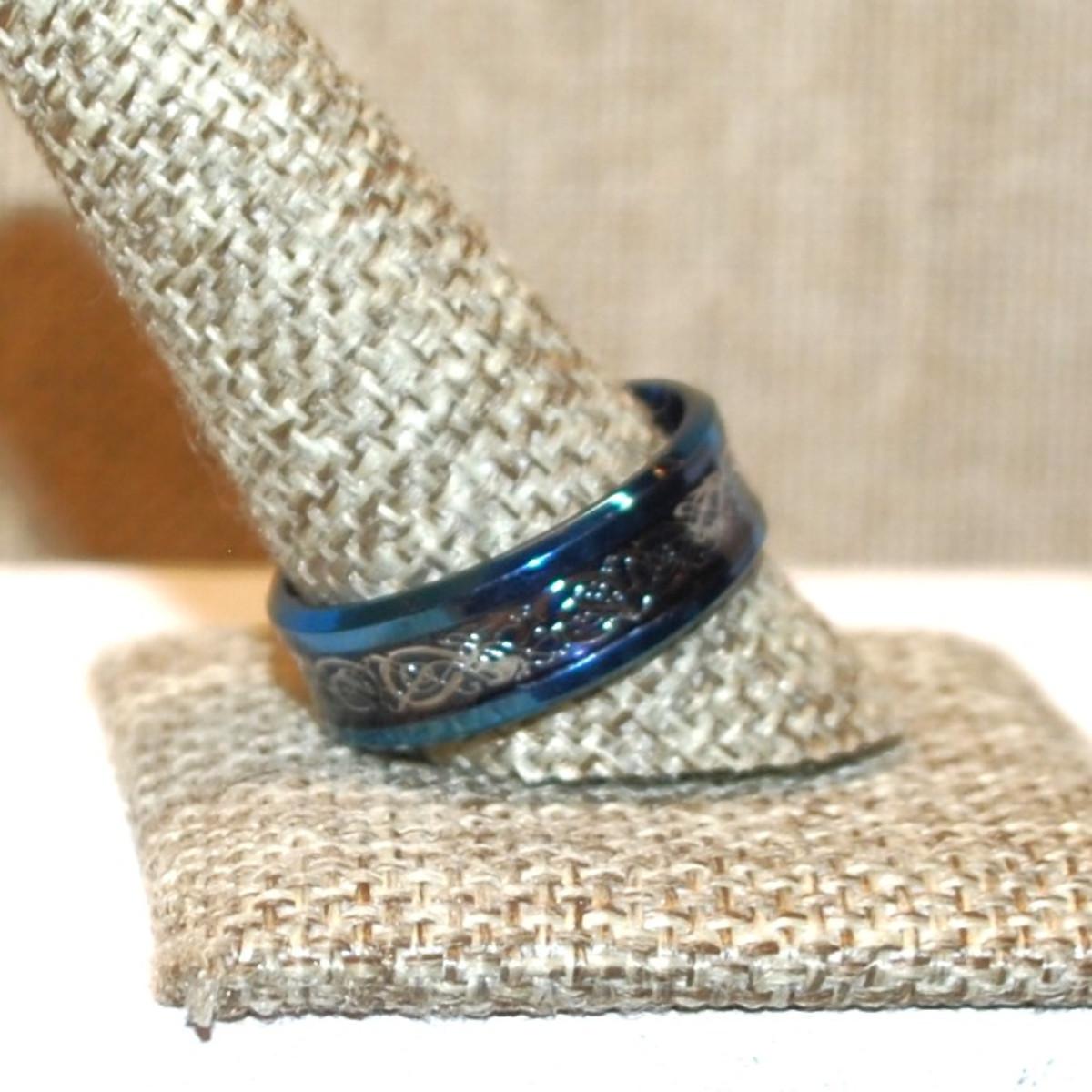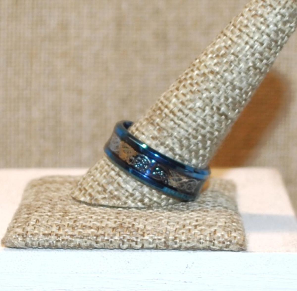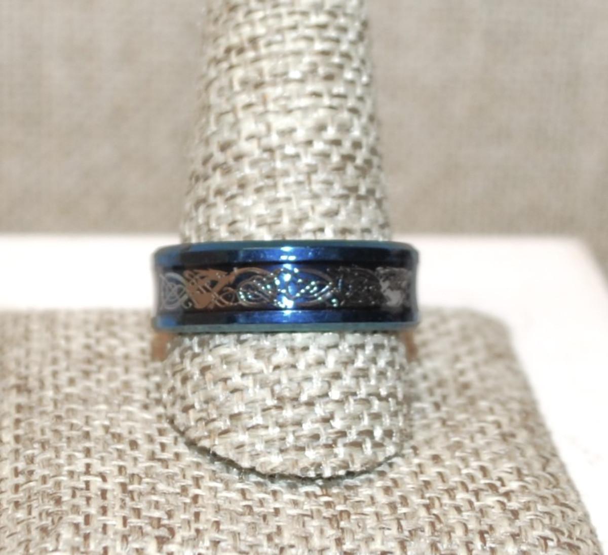 Size 11½ Silver Color Graphic Design Infinity Ring on a Blue Band (5.3g)