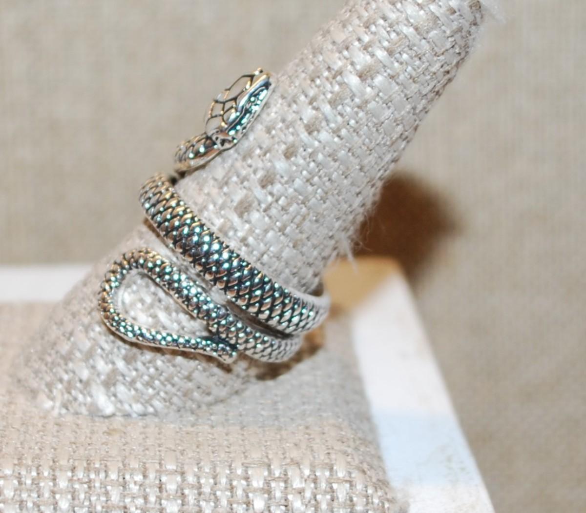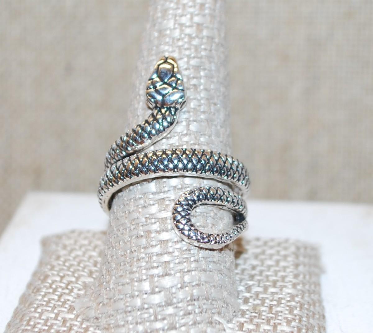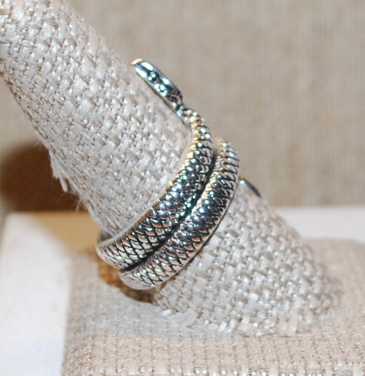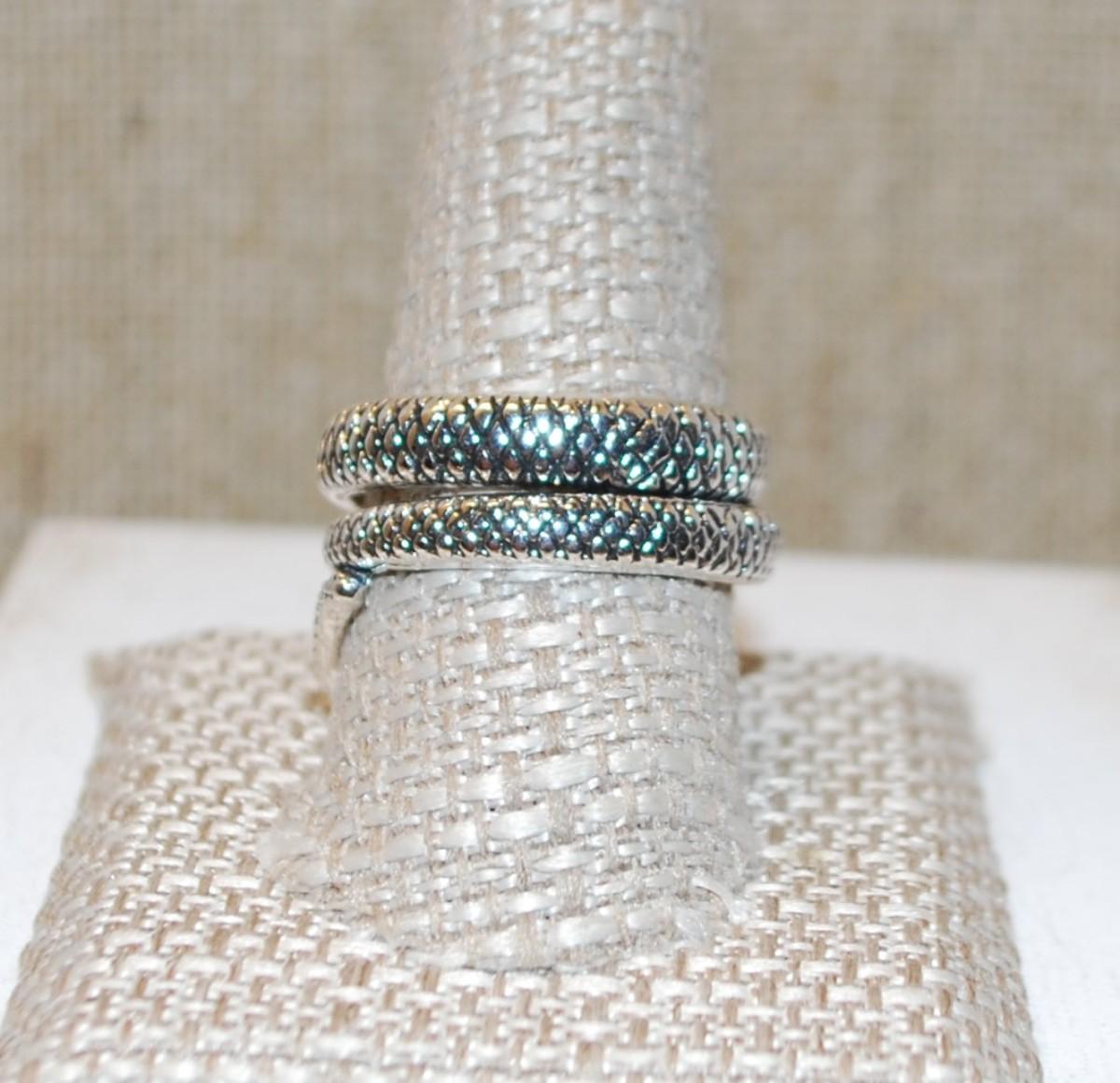 Size 11 Silver Tone Rattlesnake Ring with Pronounced Snake Scales (10.0g)