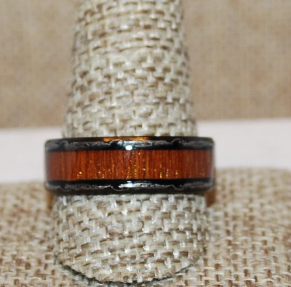 Size 11 ½ Tungsten Carbide Ring with Graphic Rim Designs and Inner Black Band (5.1g)