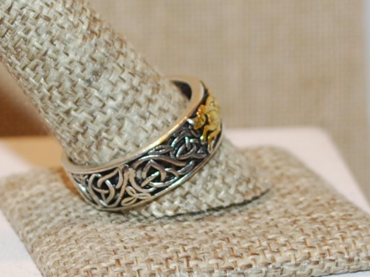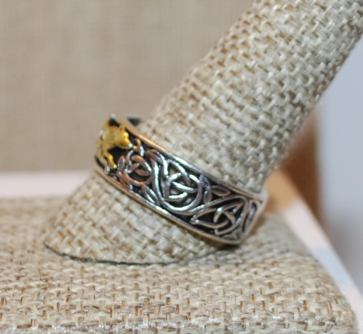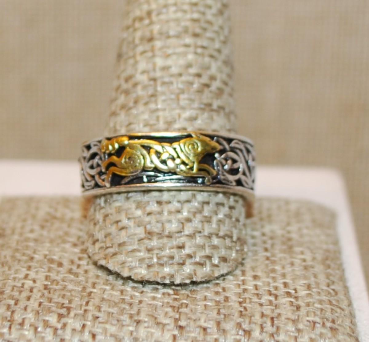 Size 11½ Two Tone "Mythos Creature" Ring on a Graphic Designed Silver Tone Band (6.0g)
