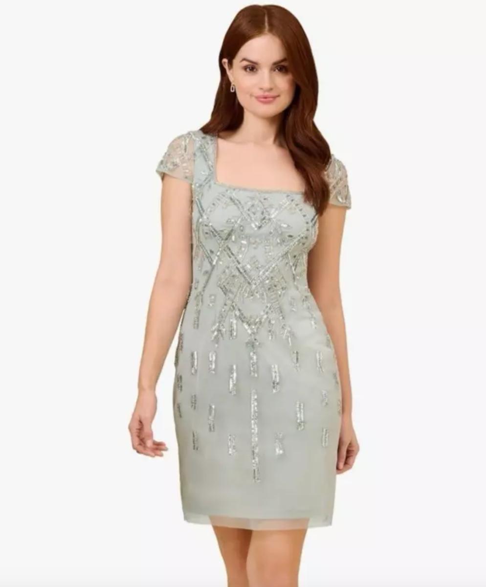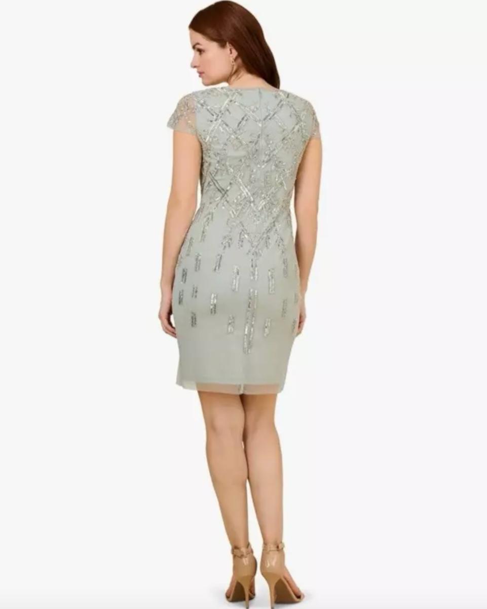 Size 12 Adrianna Papell Beaded Cap Sleeve Cocktail Dress Aqua Dust