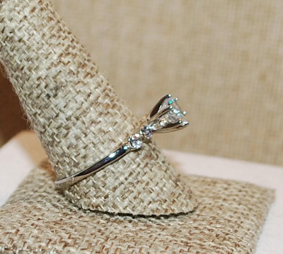Size 12 Hi-Rise Single Clear 6 Prong Round Stone with 4 Round Side Accents on a Silver Tone Band (2.8g)