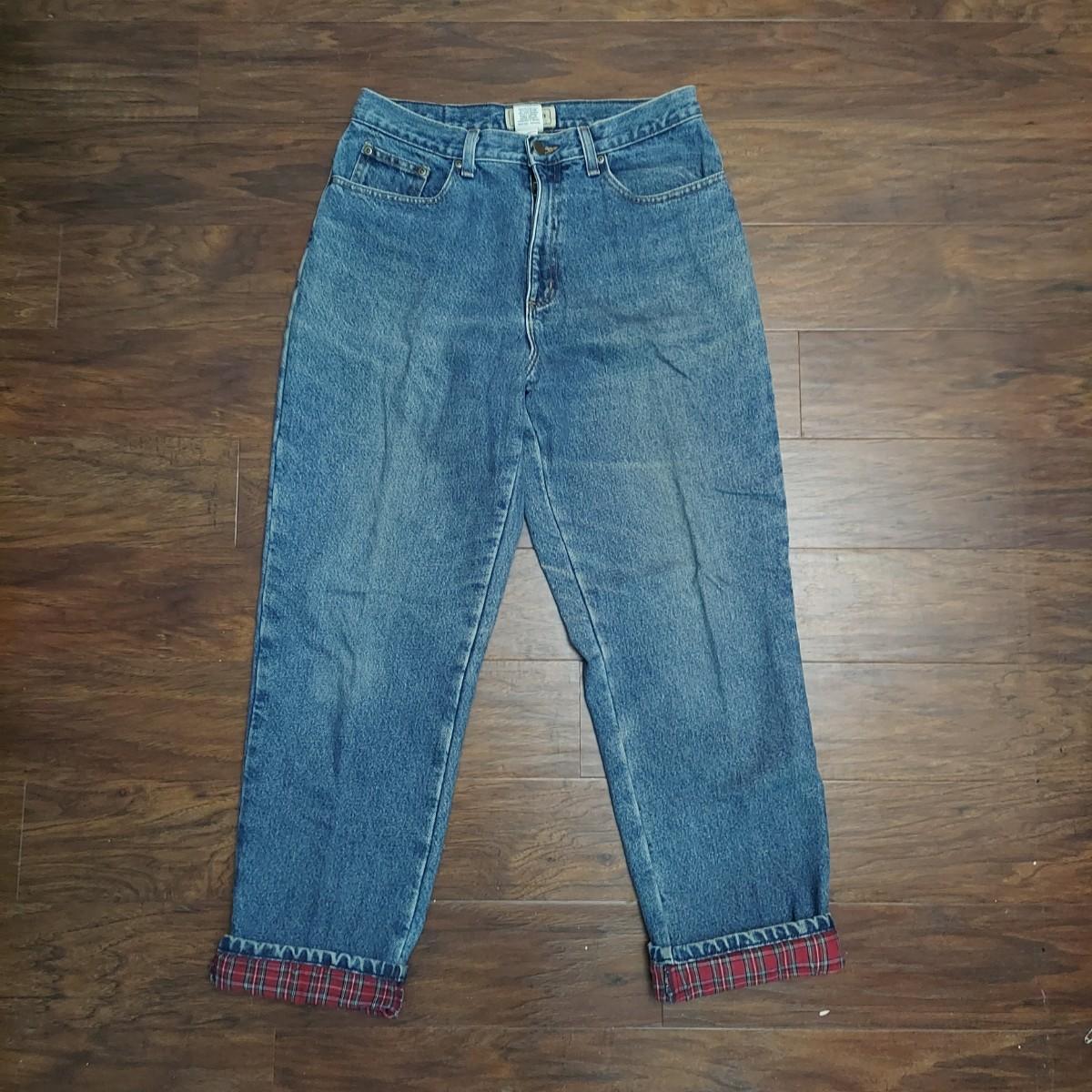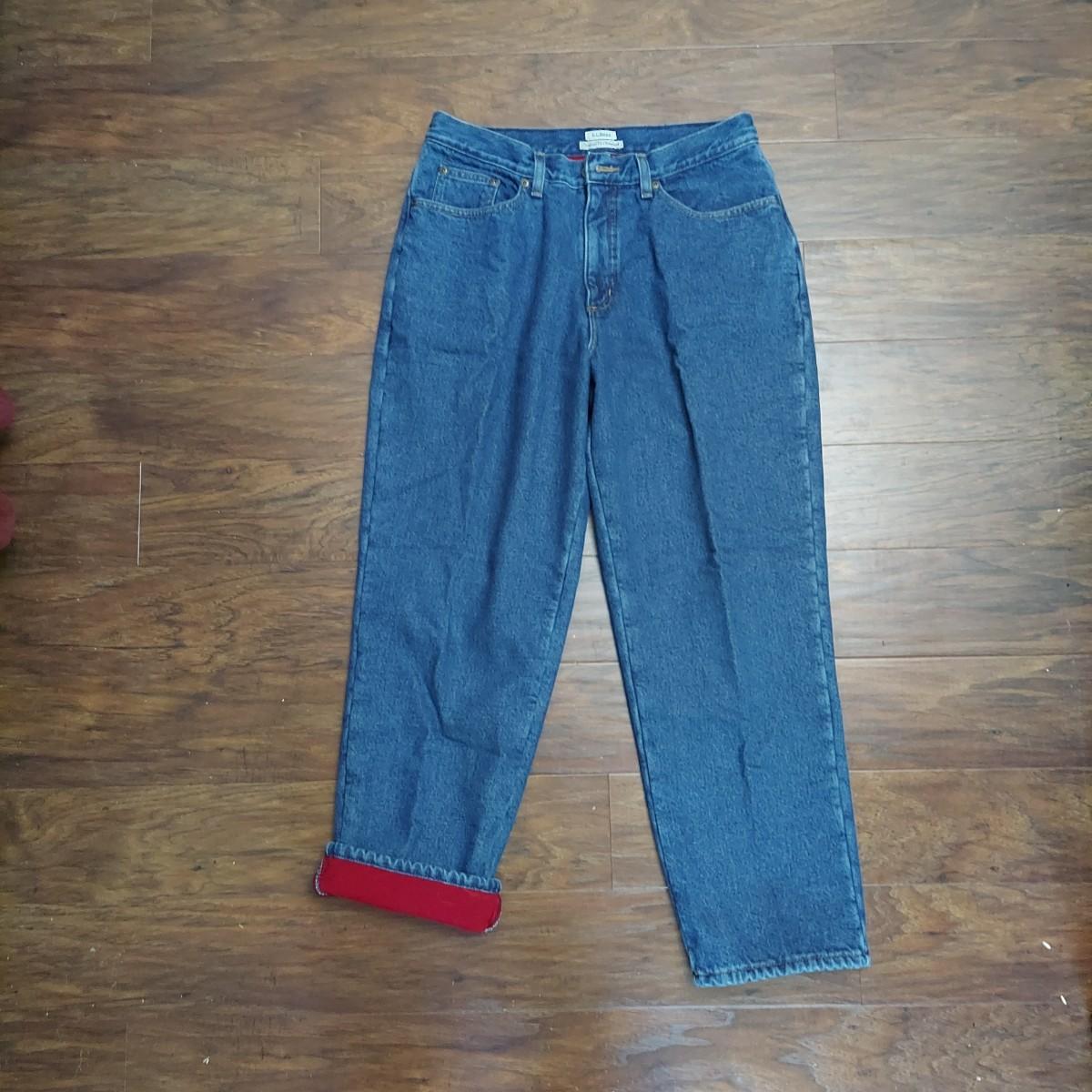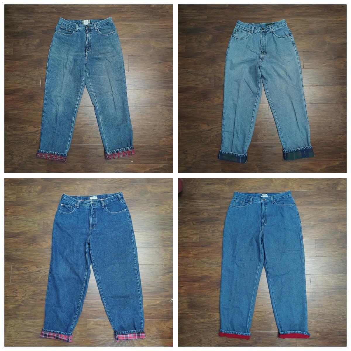 Several pairs of old school, high-waist “mom jeans” with a lining mostly in size 10-14. Jeans are cotton without stretch. Linings vary from cotton flannel to fleece. There are a few pairs of jeans in the same style without a lining. In the last photo, showing the entire lot inventory, the left and center stack are lined; the right stack is unlined. Brands include L.L. Bean, Columbia, Eddie Bauer and more. Please see photos for details. Not all items are shown individually. Please schedule a preview appoint if you are interested in seeing each piece. Shipping available.