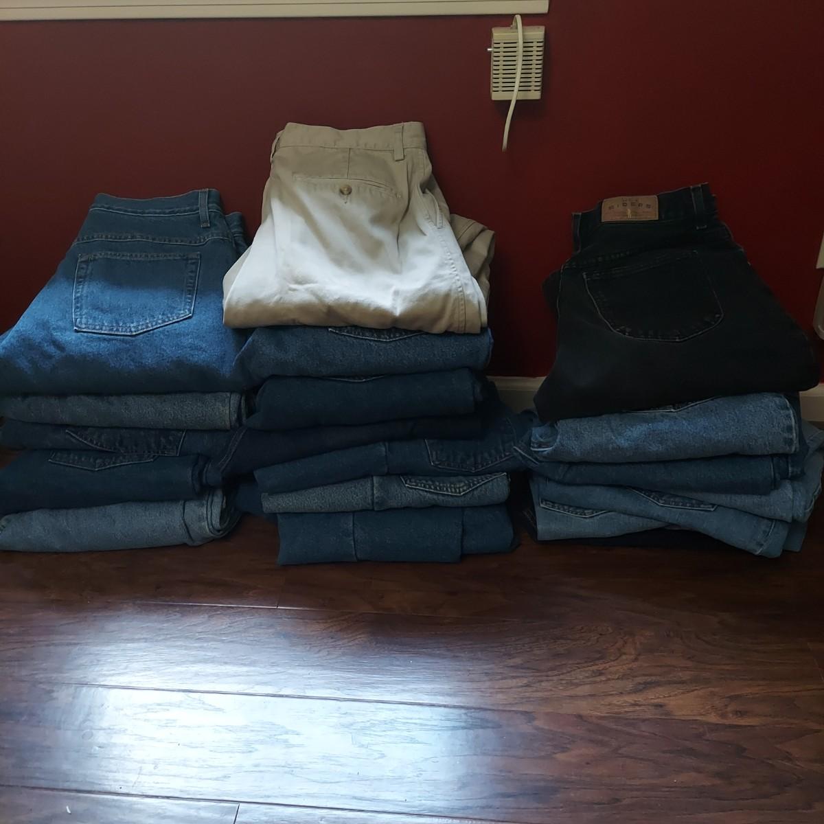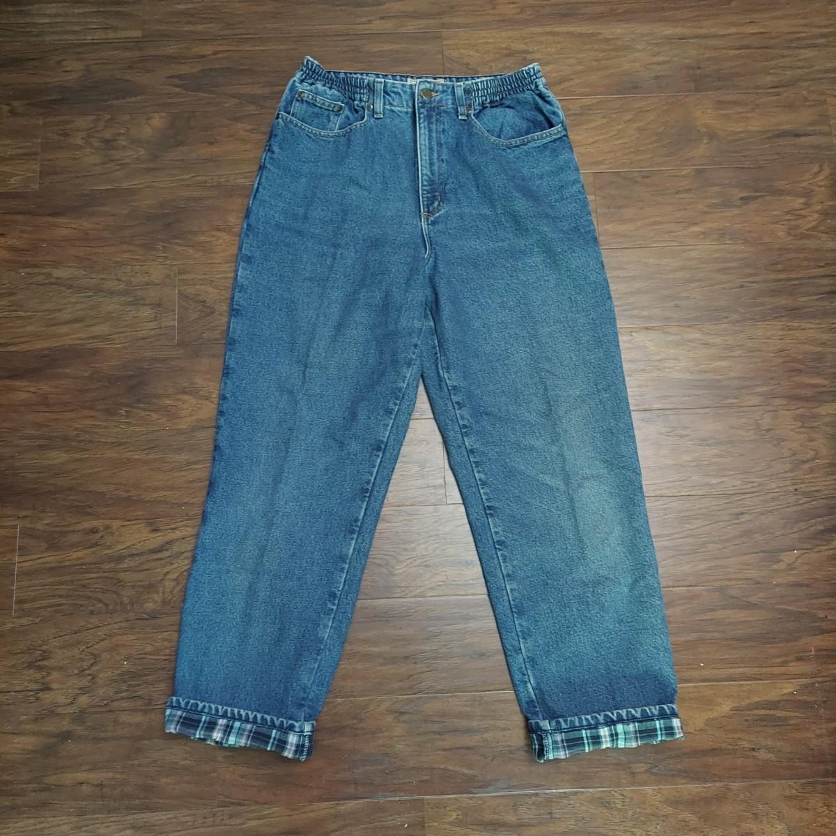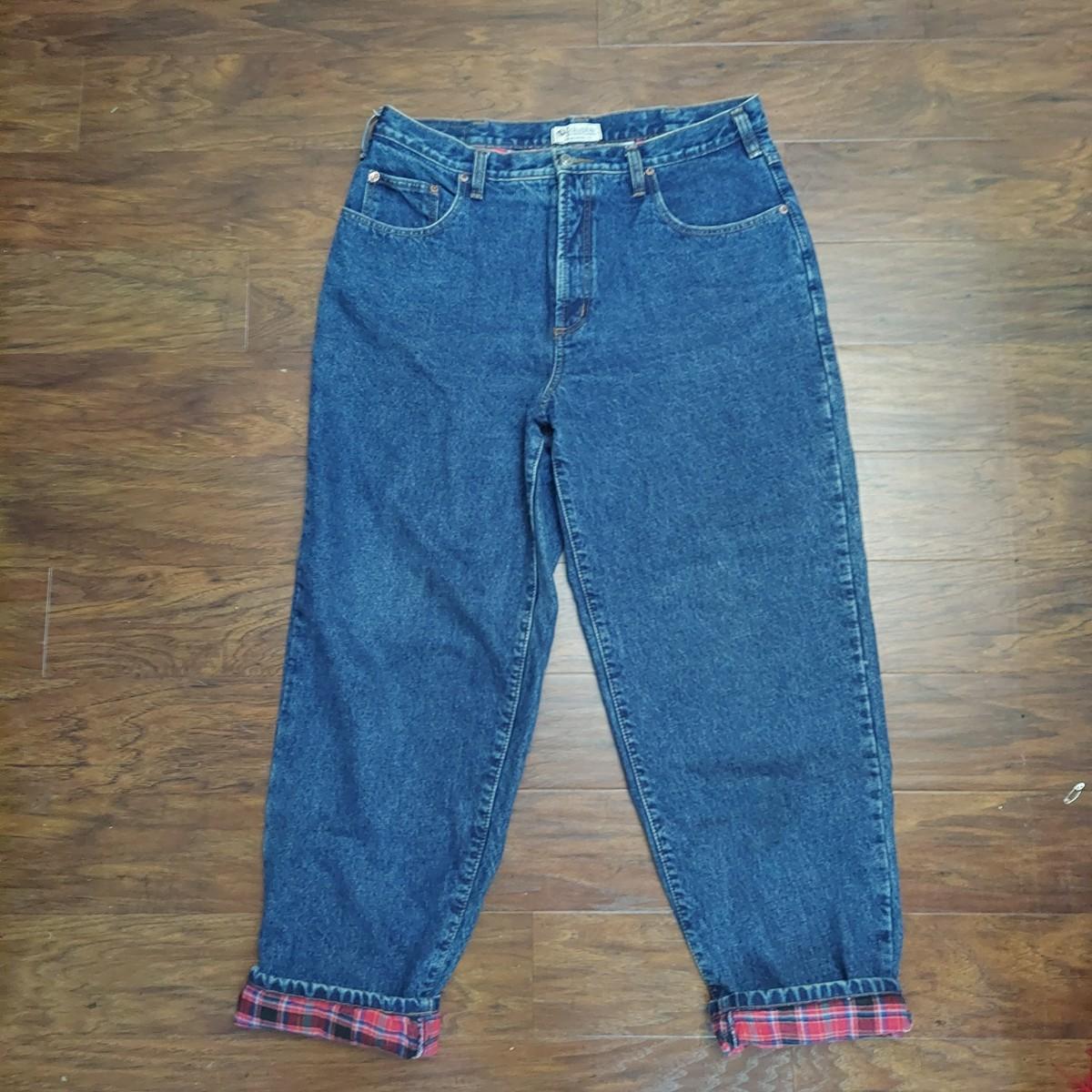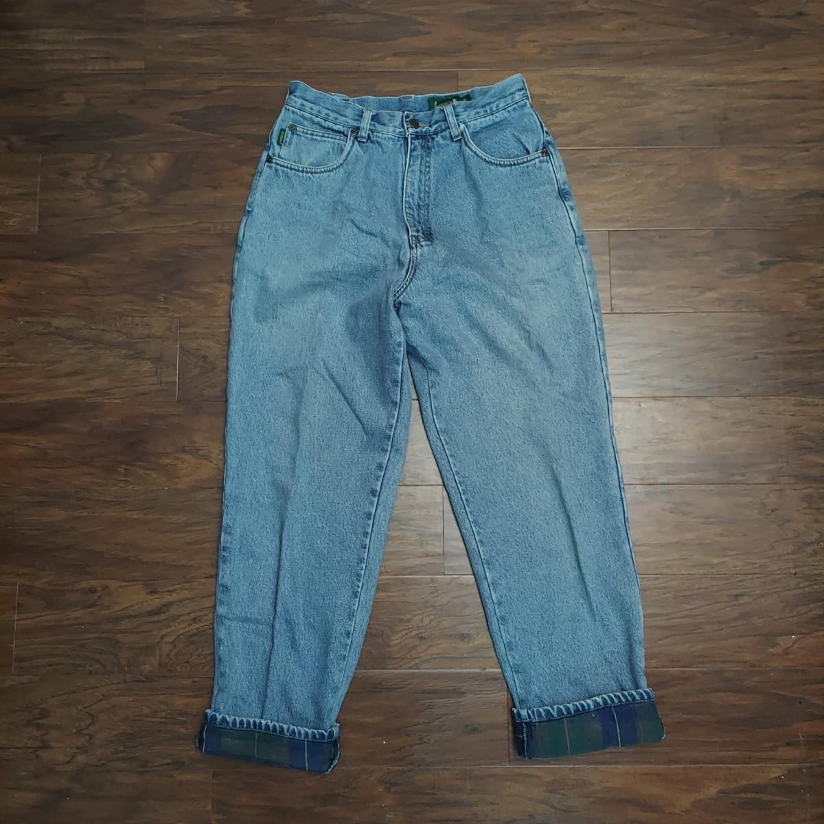 Several pairs of old school, high-waist “mom jeans” with a lining mostly in size 10-14. Jeans are cotton without stretch. Linings vary from cotton flannel to fleece. There are a few pairs of jeans in the same style without a lining. In the last photo, showing the entire lot inventory, the left and center stack are lined; the right stack is unlined. Brands include L.L. Bean, Columbia, Eddie Bauer and more. Please see photos for details. Not all items are shown individually. Please schedule a preview appoint if you are interested in seeing each piece. Shipping available.