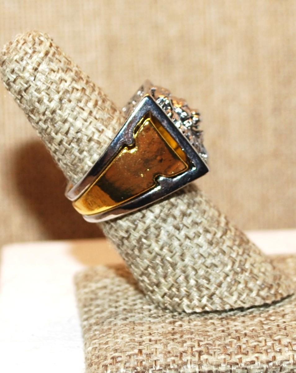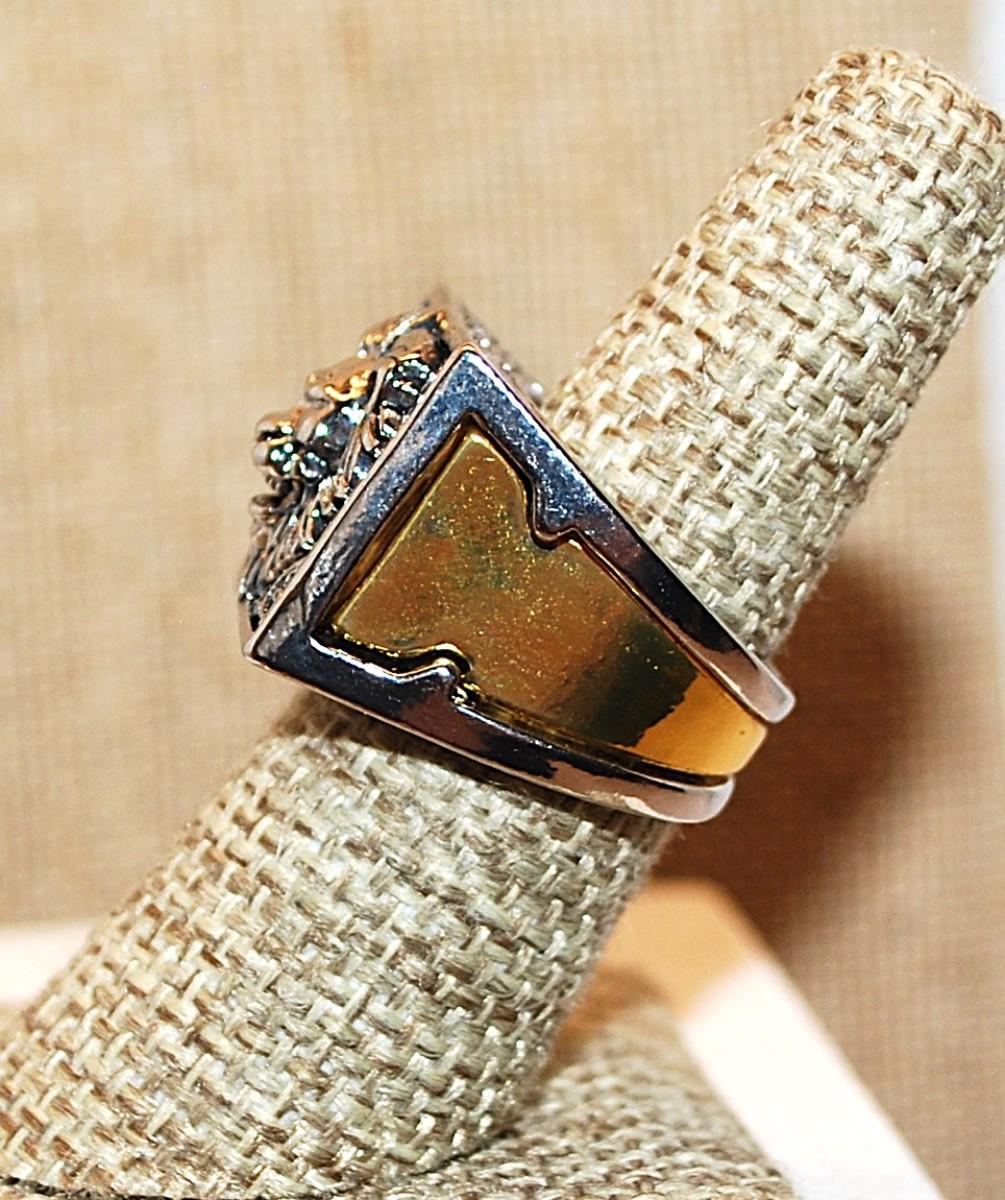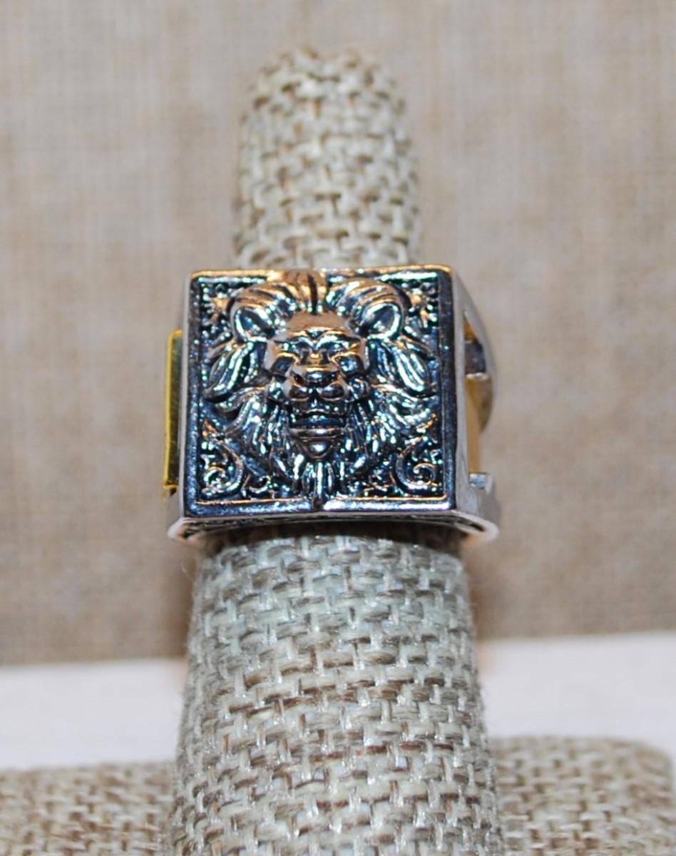 Size 12 Unique Slide-In "HIDDEN COMPARTMENT" LION Face Ring on a Silver-Tone Band (23.8g)