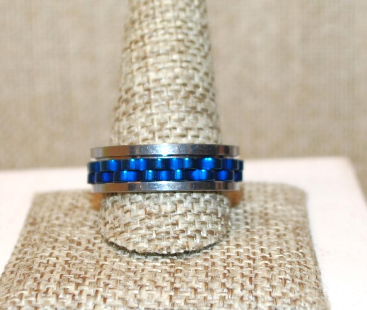 Size 13 Unique Infinity Ring with 2 MOVEABLE "Gears" in the Middle on a Silver Tone Band (8.1g)