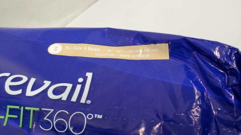 Size 3 Briefs, Prevail Per-Fit 360, 15 Briefs - New