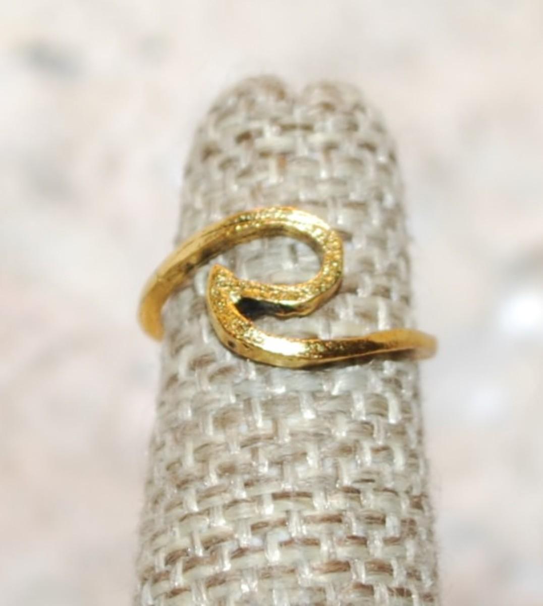 Size 3 TOE RING with "Letter S Shape" on a Gold Tone OPEN BAND (0.8g)