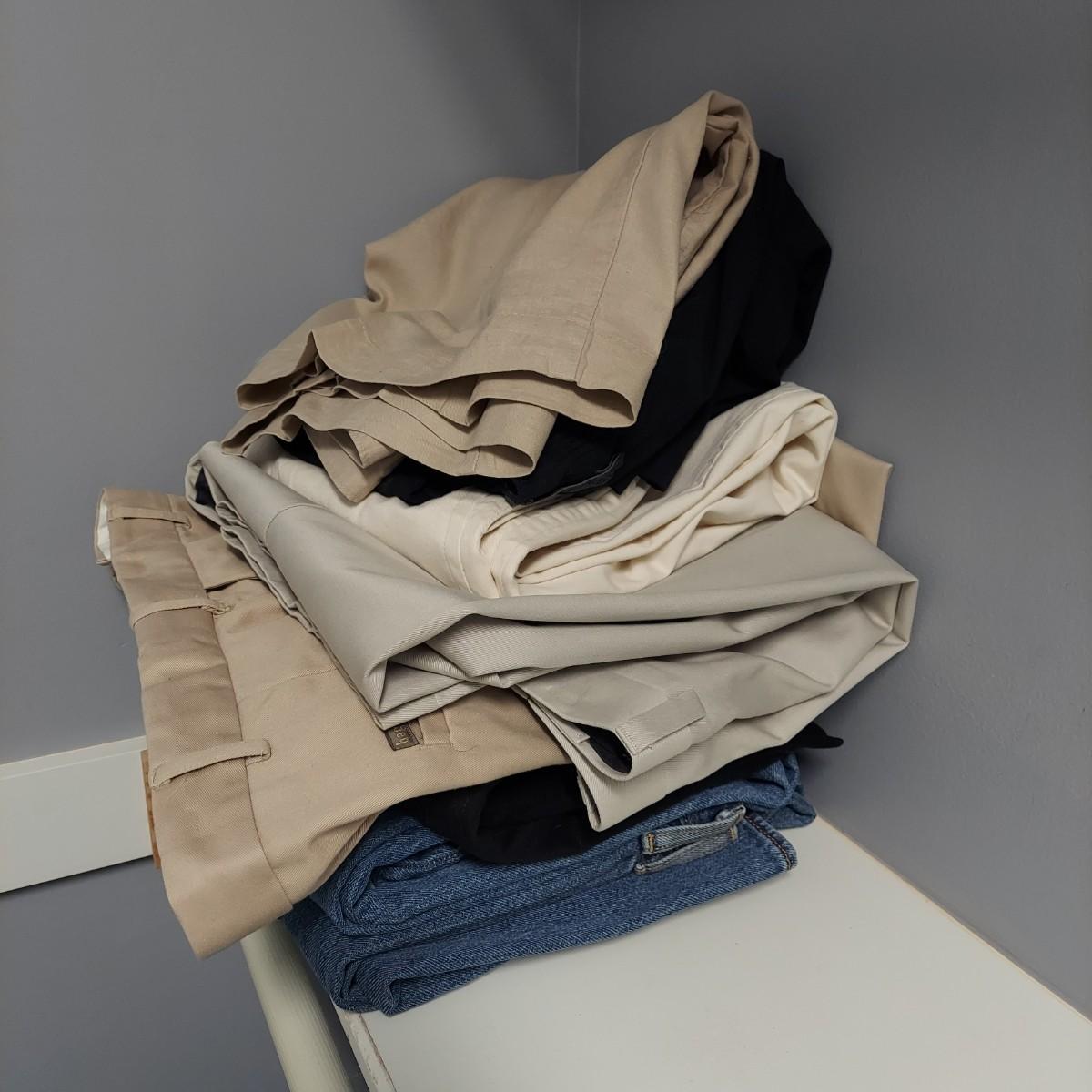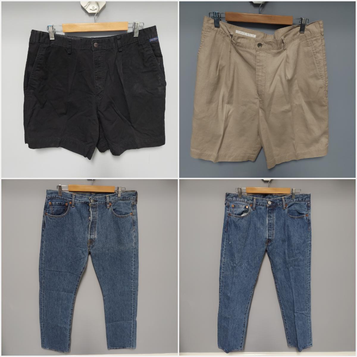 Several pairs of men's pants in waist size 36-38. Two pairs of Levi's jeans plus three pairs of slacks, two pairs of shorts and two pairs of casual pants. Please see photos for sizes, brands and specific details. Shipping available