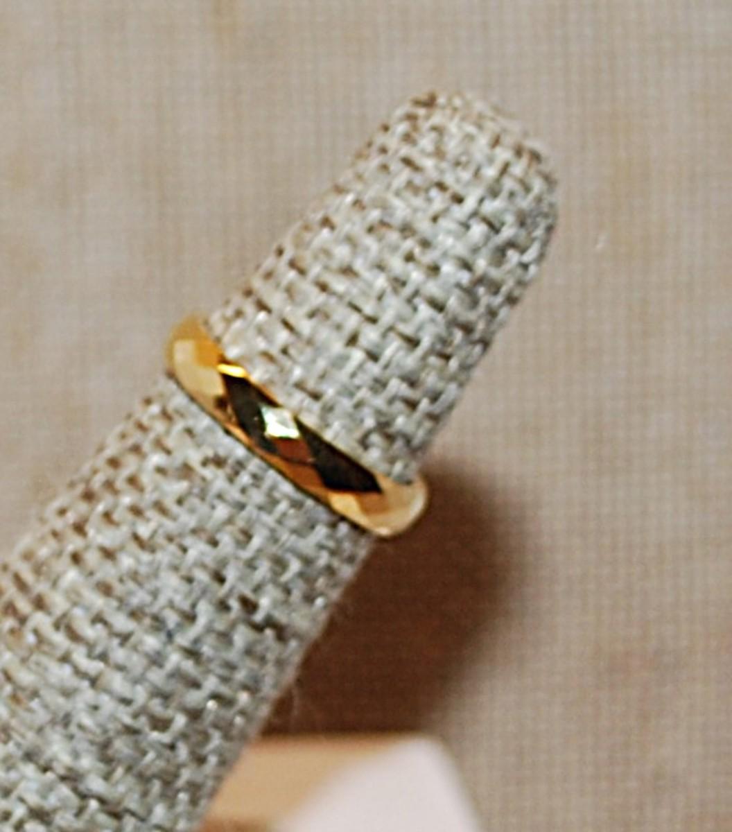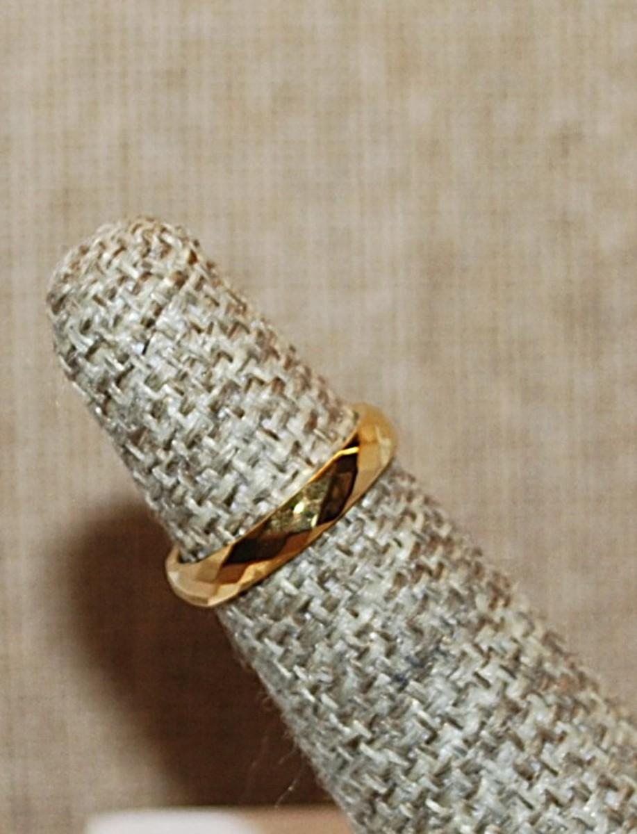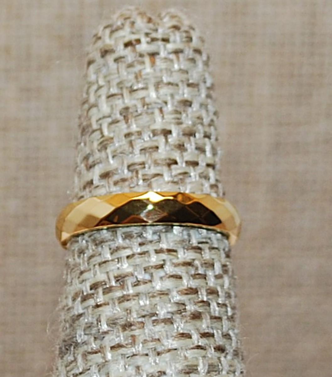Size 4 Beveled Titanium Infinity Stainless Steel Ring on a Gold Tone Band (1.4g)