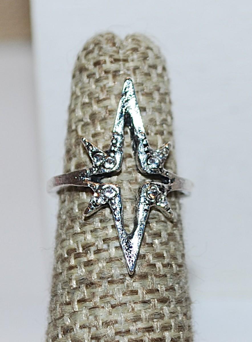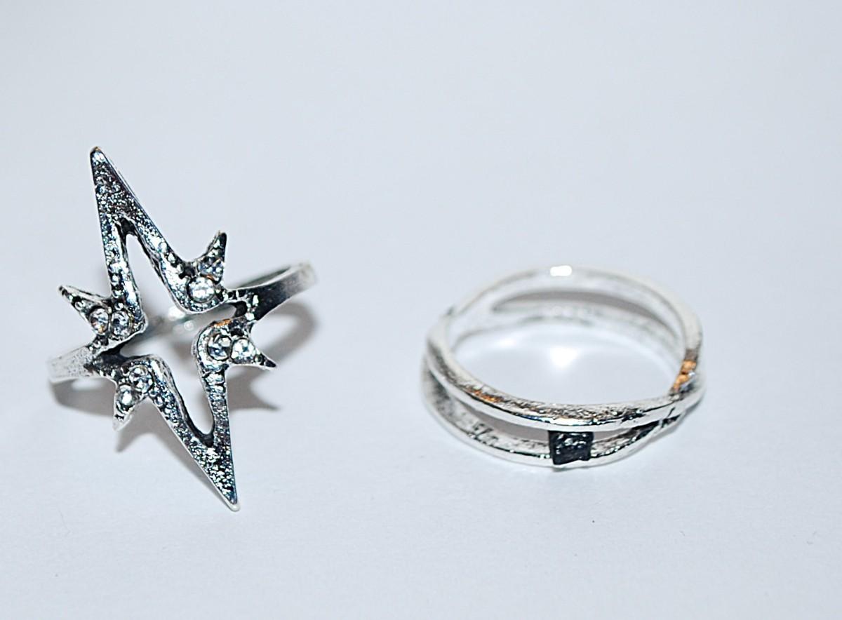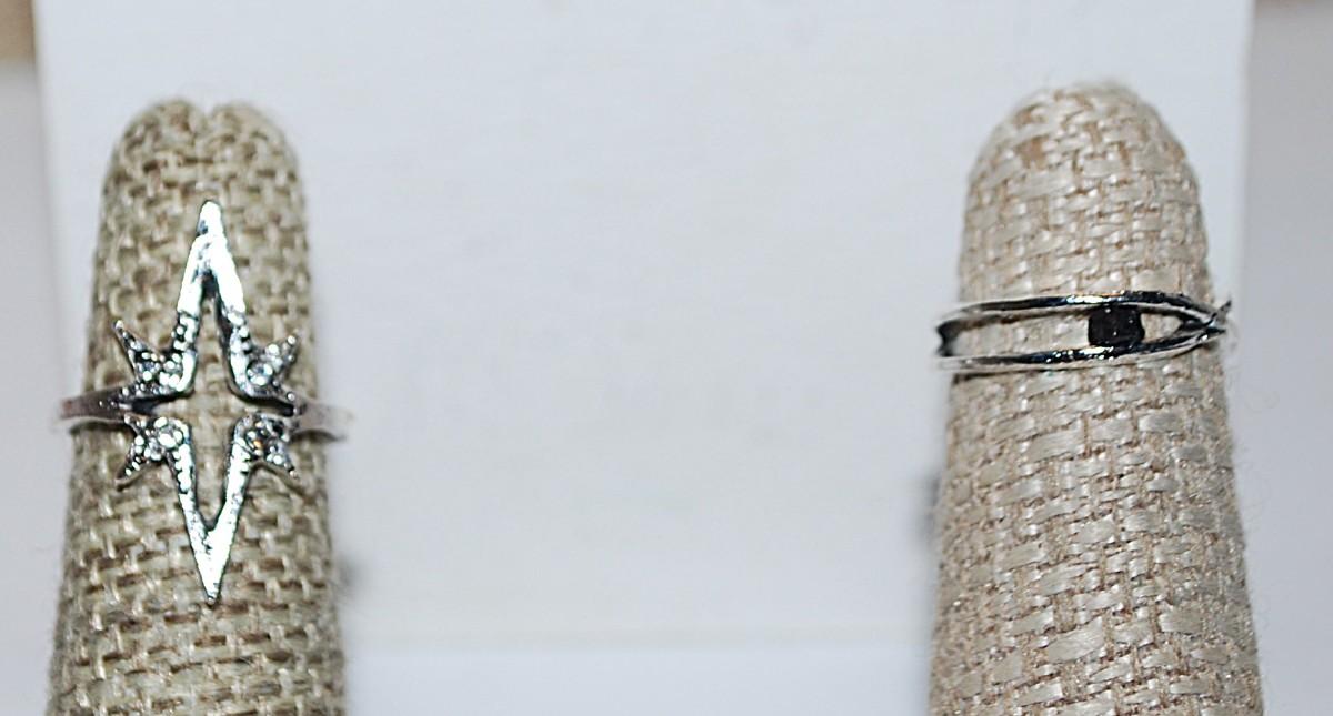 Size 4 Collection of 2 Rough Cut Silver Tone RINGS - Spikes with 8 Stones and Criss-Cross with Charcoal Style Stone (2.7g)