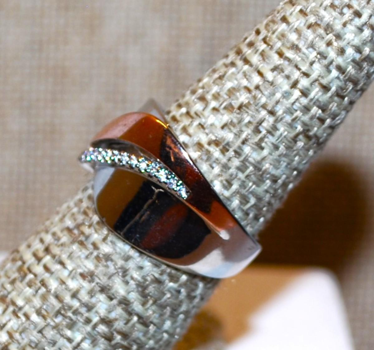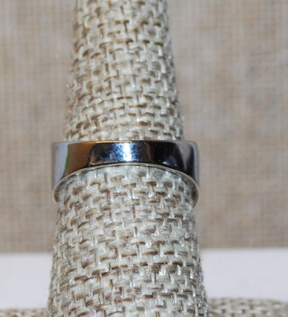 Size 4¾ Contemporary Two-Tone Ring with Line Accents on a Silver Tone Band (5.3g)