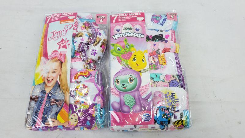 Size 4 Girls Panties: 7 Jojo Siwa Panties & 7 Hatchimal Panties - New